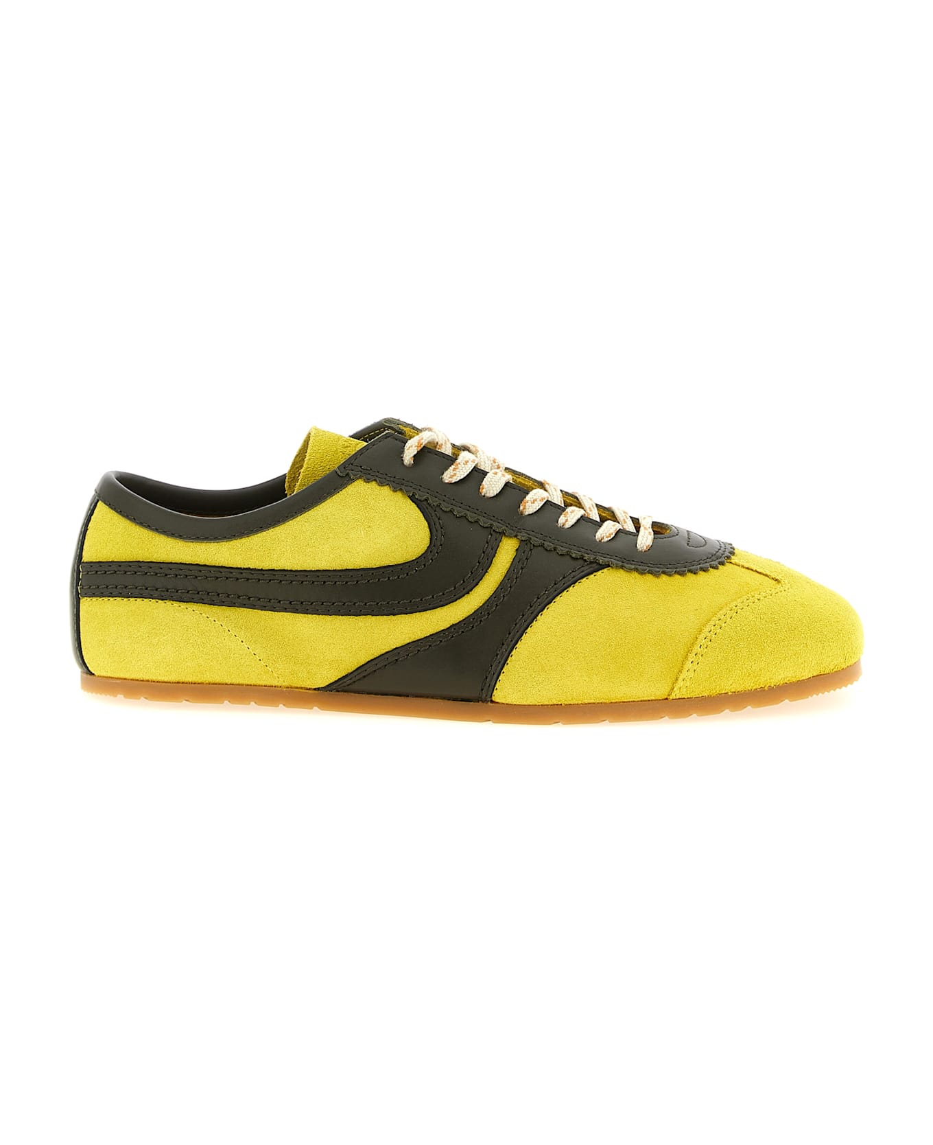 Suede sneakers with contrasting leather details and scalloped edges, lace-up closure, rubber sole.