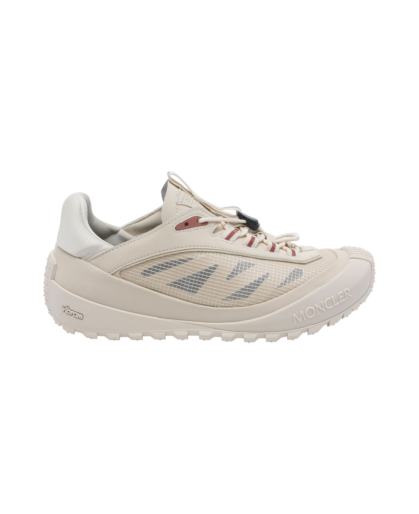 Moncler white Trailgrip sneakers, laces closure, logo, leather and rubber upper