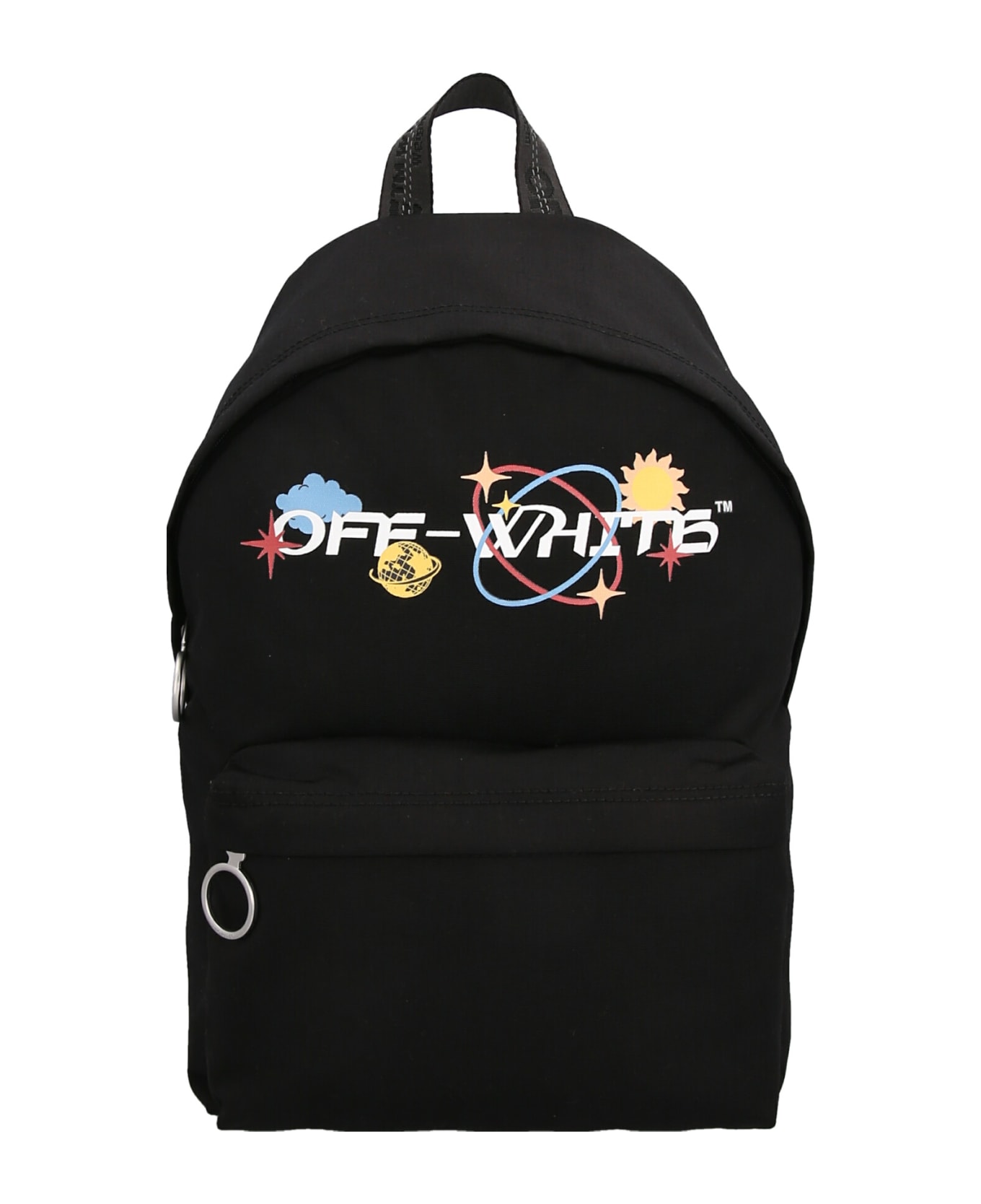 Off Planets' nylon backpack with front logo print, zip closure, outer zip pocket, adjustable shoulder straps.