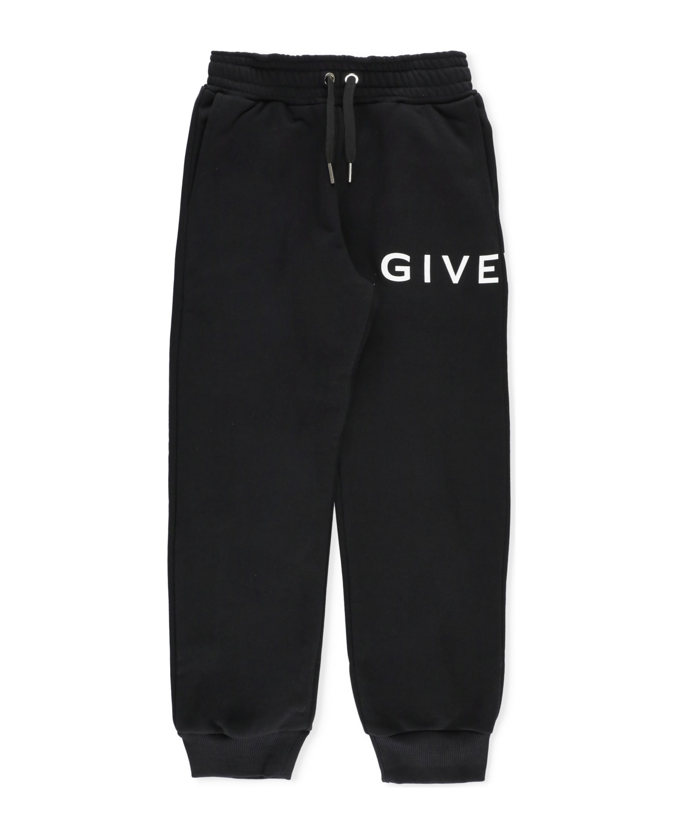 - Black Givenchy Junior cotton sweatpants for boy - Elastic waist with drawstrings - Two side slit pockets - Two rear welt pockets - Elastic ribbed hem - Side contrasting color logoed print at left leg - Rear contrasting color logoed print Composition: 86% Cotton, 14% Polyester Profiles:, 98% Cotton, 2% Elastane