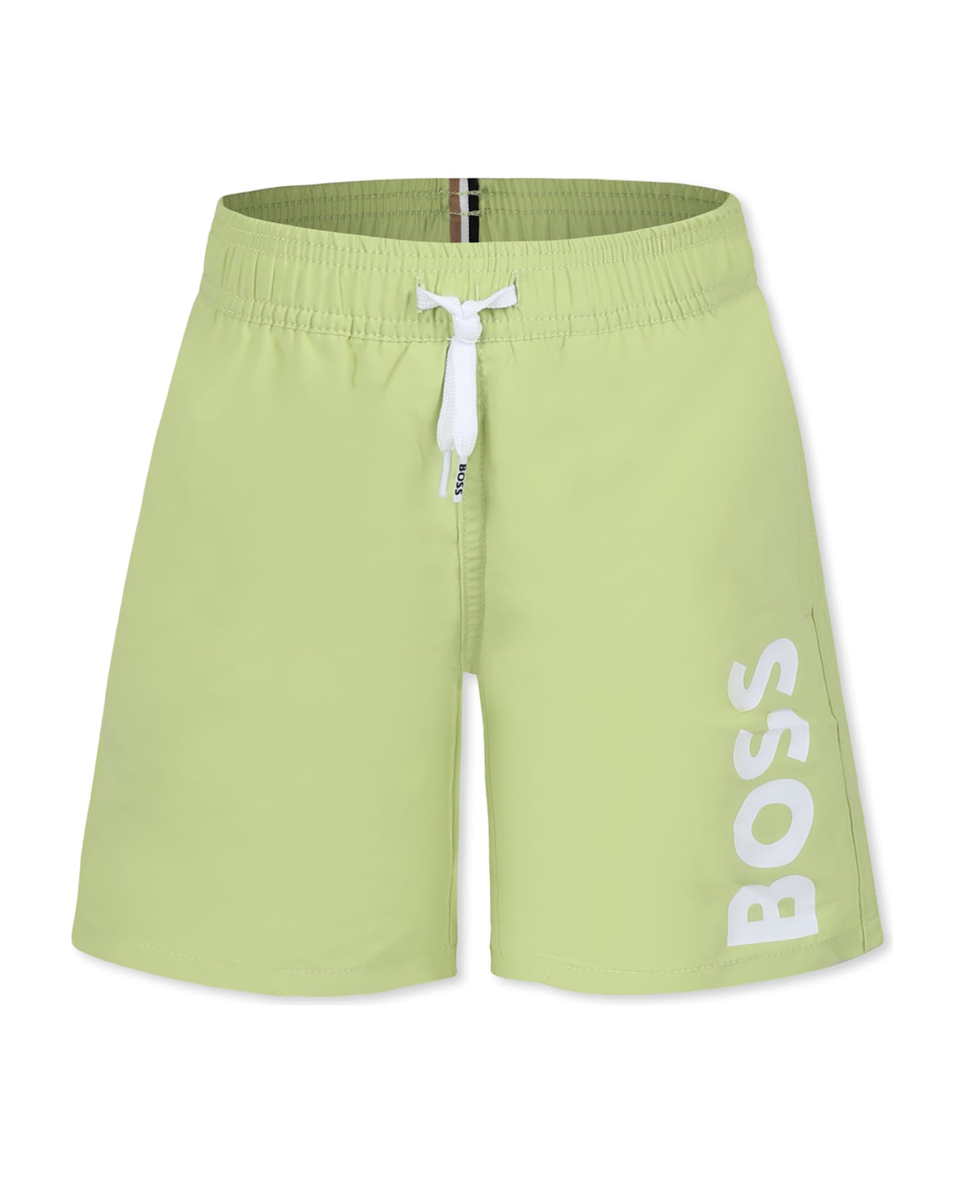 Green Swim Shorts For Boy With Logo