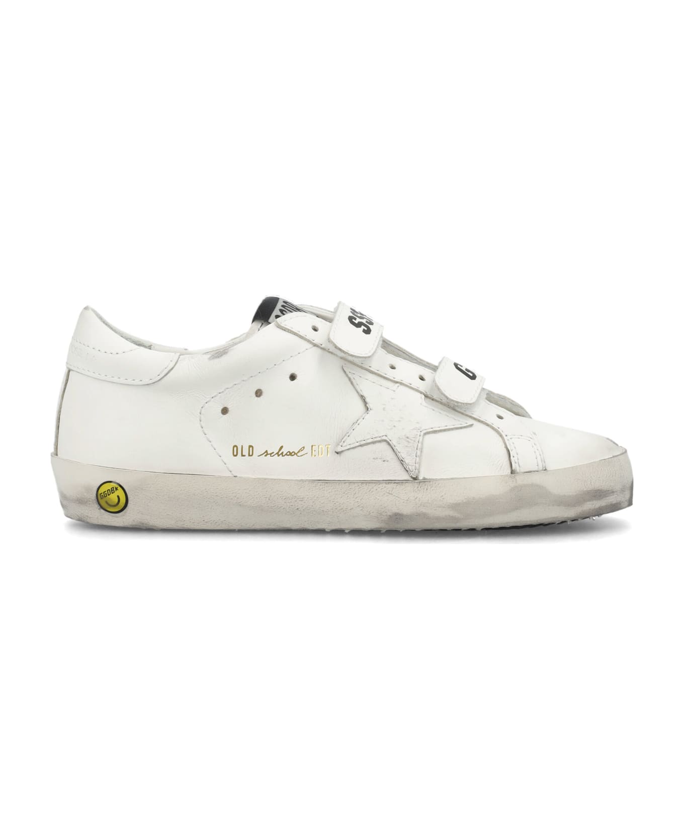 Leather Old School By Golden Goose Kids. Featuring: Low-top Hook And Loop Straps With Logo Print Woven Label At Tongue Round Toe Distressed And Worn-out Effect
