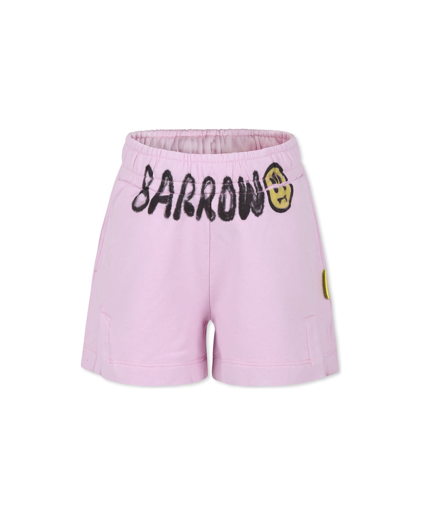 Pink shorts in brushed cotton, with elasticated waist, side pockets, slits on the front and fake irons. They are embellished with iconic yellow smiley face and logo on the front. They come with a yellow logo key ring.