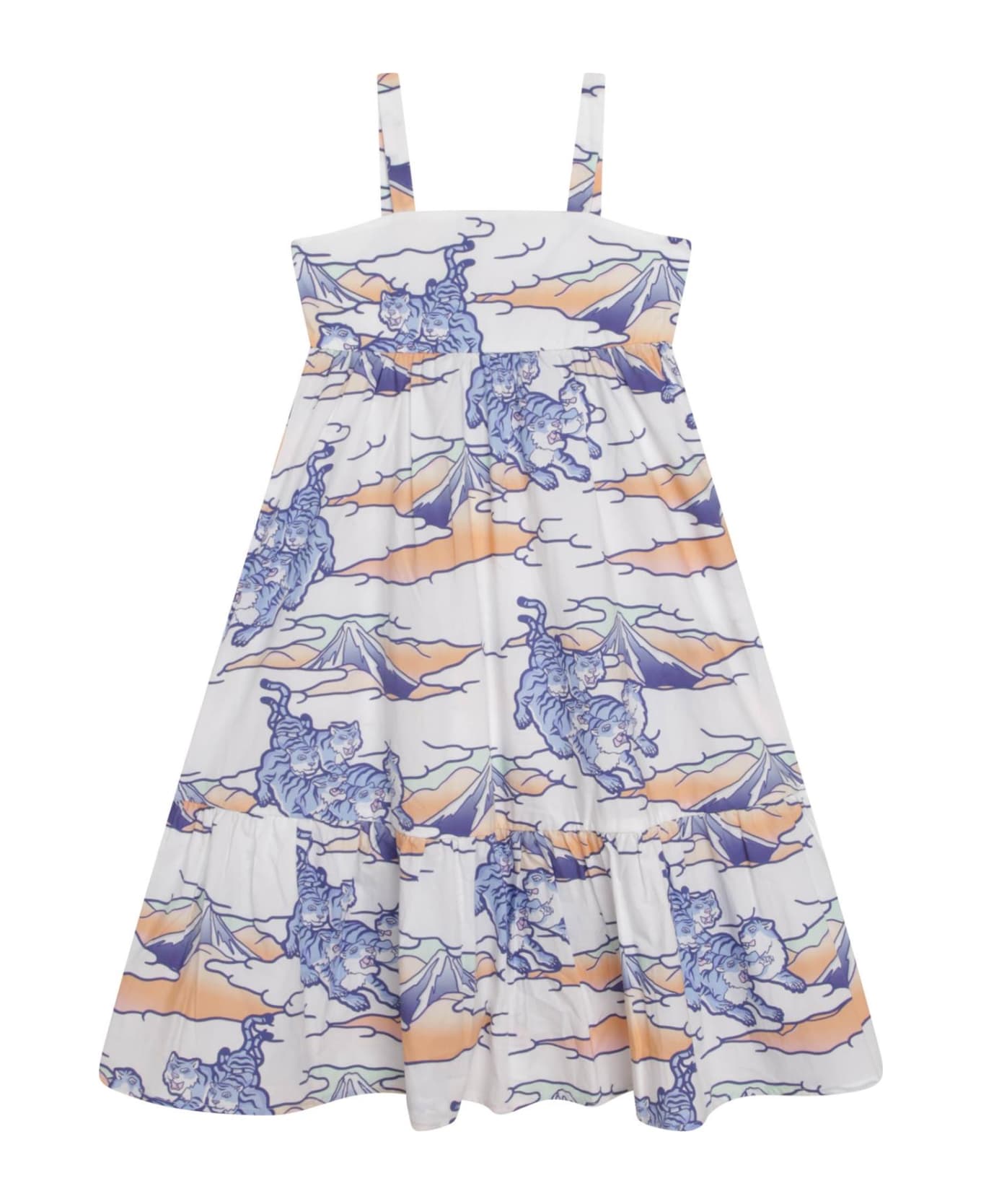 White/Multicolor, cotton, all-over graphic print, sleeveless, square neckline, ruched panel, empire style, peplum design and straight hem. Composition