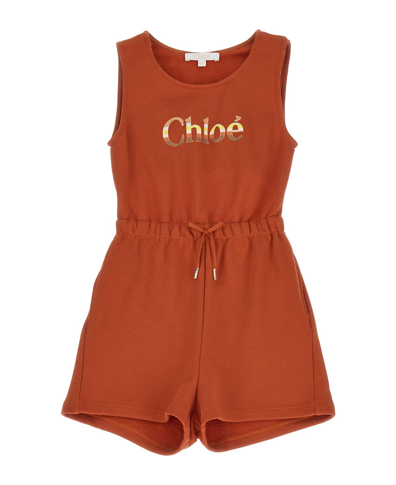 One-piece cotton bodysuit with front logo print, back cut out details, an elastic and drawstring at the waist, pockets, crewneck and a crewneck. Composition: 100% cotton