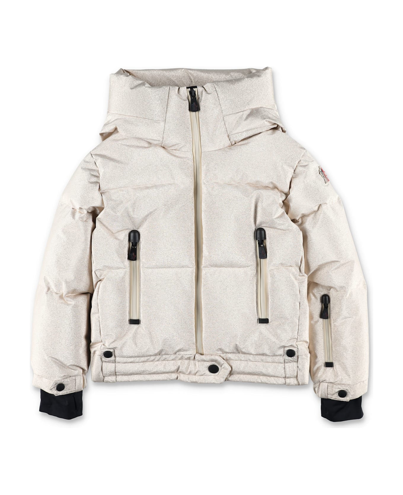 Designed For A Girl s First Winter Holidays, The Moncler Grenoble Violette Down Jacket Delivers Warmth And Functionality On The Slopes. Crafted From A Metallic Polyester Blend, The Short Puffer Is Insulated With Down And Finished With A Soft Teddy Lining For Extra Coziness. An Inner Powder Skirt, Stretch Jersey Wrist Gaiters, And A Ski Pass Pocket Ensure Full Protection And Practicality, While The Metallic Finish Adds A Modern, Stylish Touch. Metallic Polyester Blend Outer Fabric