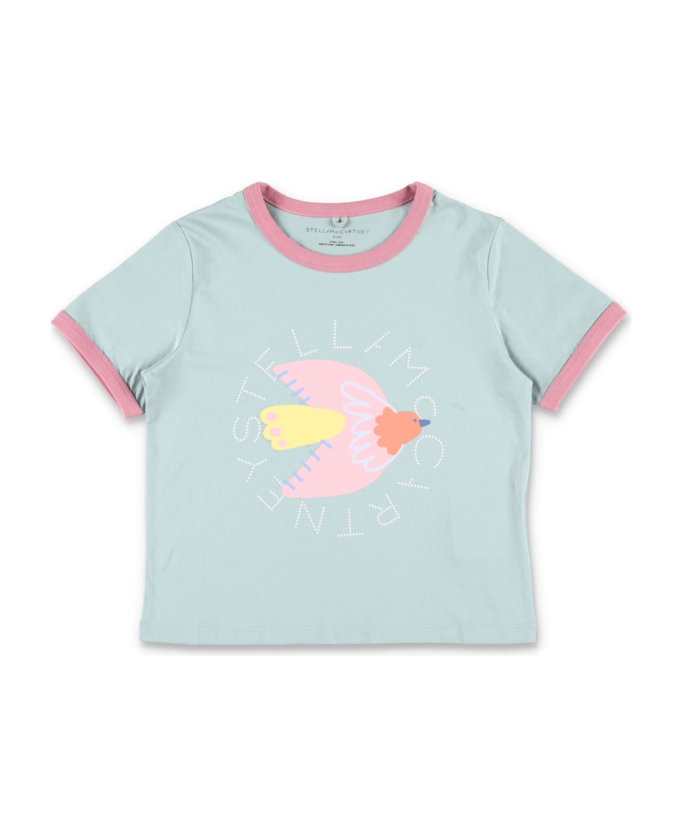 This Stella Mccartney Kids T-shirt Blends Playful Spirit With Sustainable Style. Crafted From Soft Organic Cotton, It Showcases A Vibrant Dove Motif Encircled By The Brand s Logo. Pink Contrasting Trims Add A Cheerful Detail, Making It An Everyday Essential For Stylish And Eco-conscious Little Wardrobes. Lightweight Organic Cotton