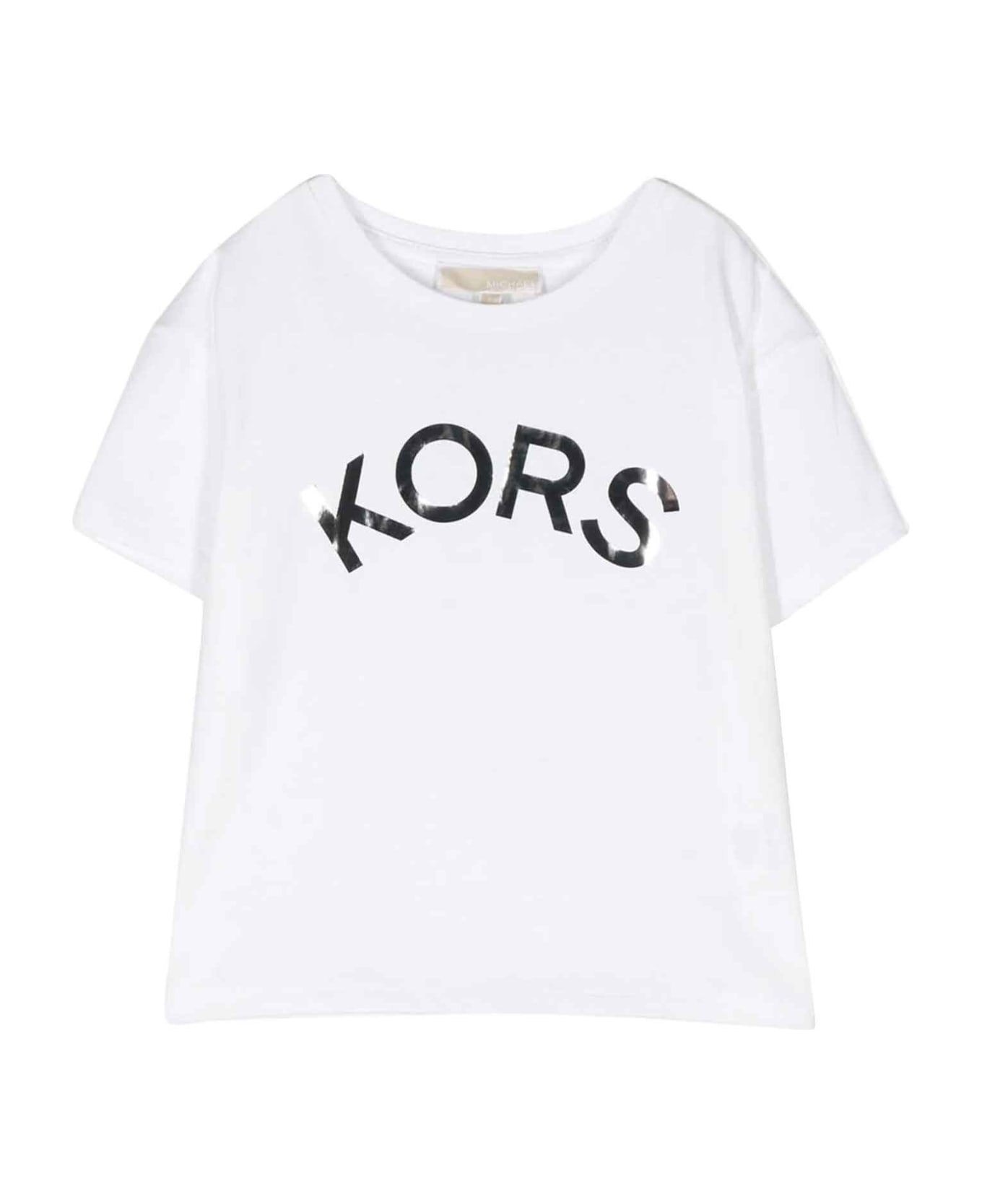White T-shirt girl. Logo print on the front, round neckline, short sleeves and straight hem. 100% Cotton