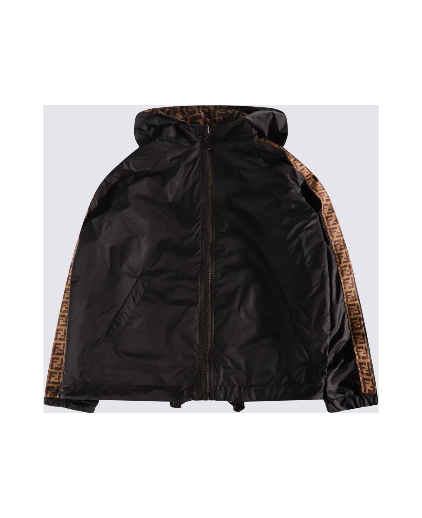 Black reversible rainproof jacket from Fendi featuring a hood, front zip fastening, long sleeves, monogram pattern, side welt pockets and elasticated cuffs. Composition: _, 100% Polyester