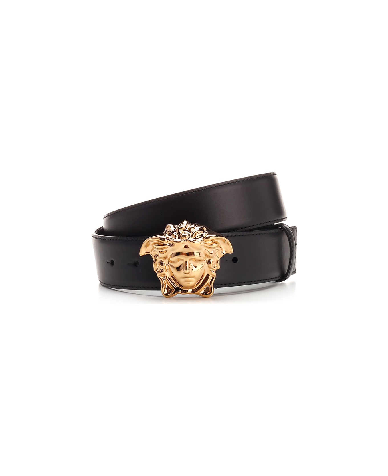 Belt from Versace in black leather with Medusa buckle. Composition: LINING 1:100% VL;OUTSIDE:100% VL