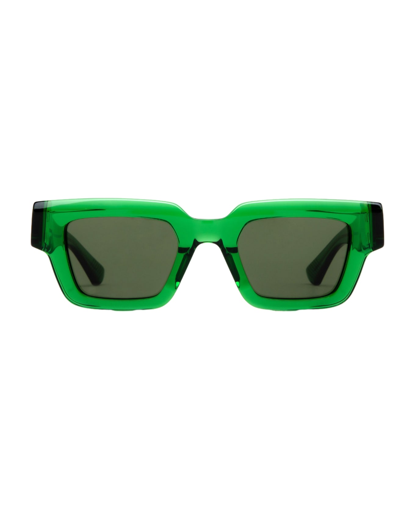Bottega Veneta BV1230S-002 - GREEN (BV1230S-002) are squared sunglasses made in Italy. They feature green acetate frame, exposed metal wirecore, gold hinge metal decoration, and green lens with 100% UV protection.