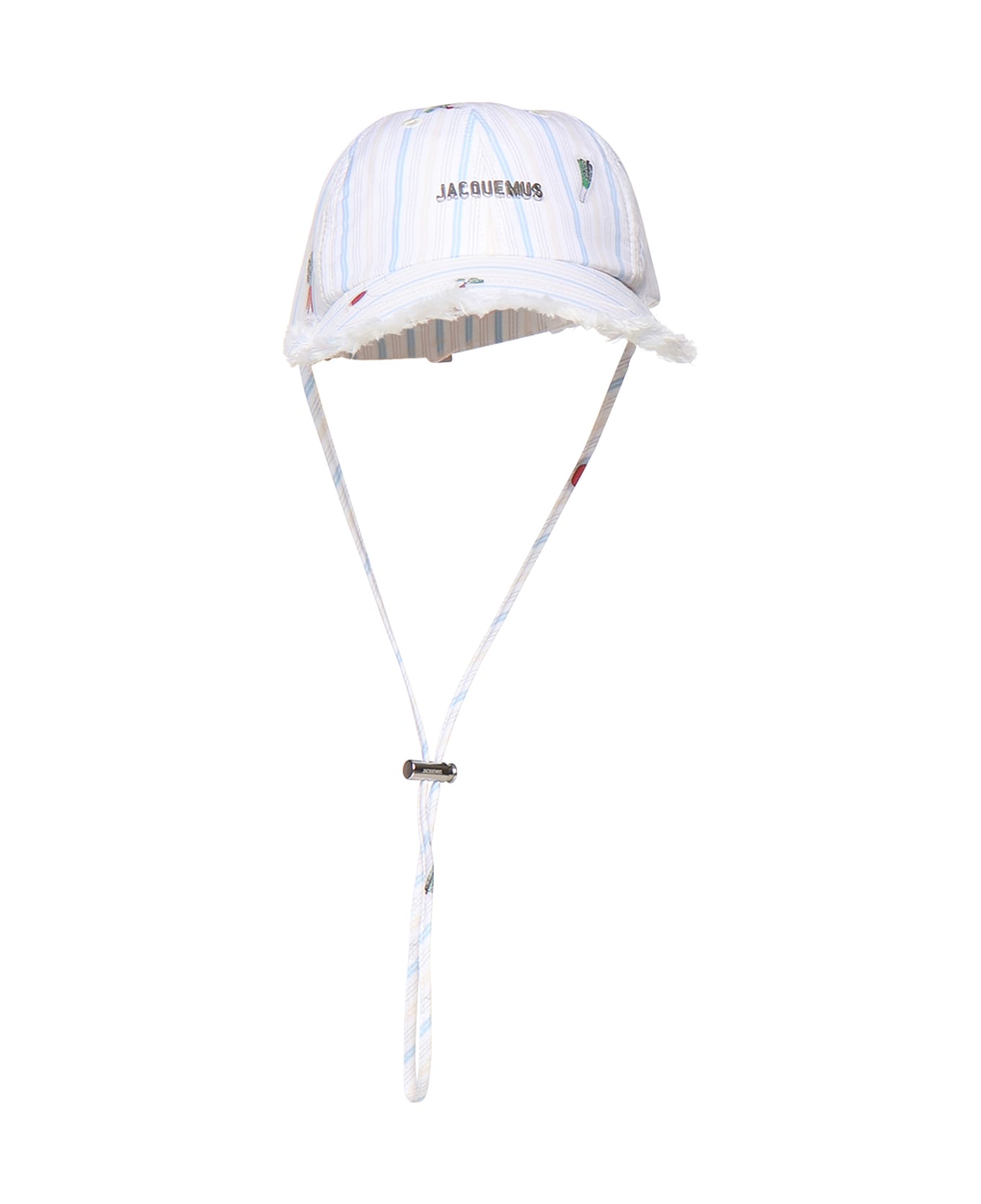 - Made of striped cotton poplin - Adjustable strap - Metal logo - Frayed edges - Designer color: Jacquard Classic Stripes
