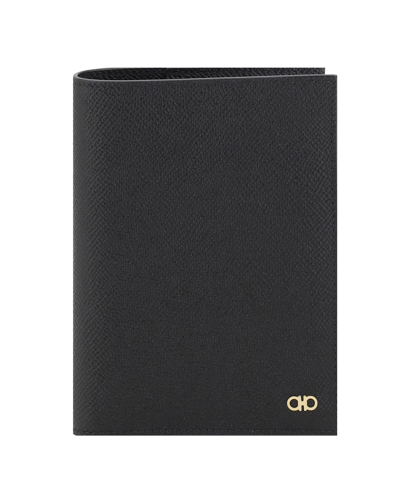 Leather document case by ferragamo, billfold model with iconic gancini plaque applied to the front for a distinctive touch. inside, it features card slots and the iconic monogram press-stamped on the interior panel, adding an element of elegance and functionality. a practical and luxurious accessory for organizing essentials in style.