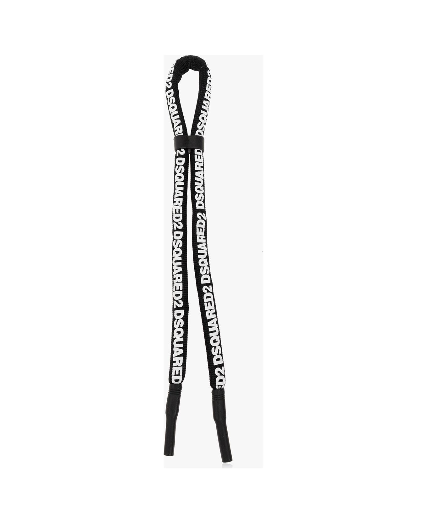Black sunglasses holder strap Dsquared2. This design features a black logo print and silicone elements.