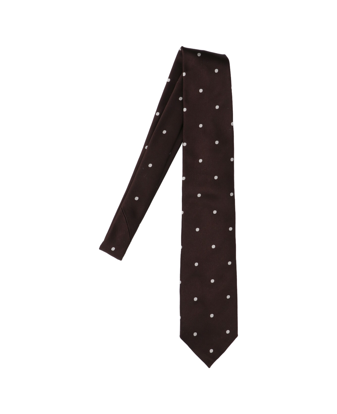 Tom Ford brown silk tie with white polka dot pattern, back logo label, adjustable.
