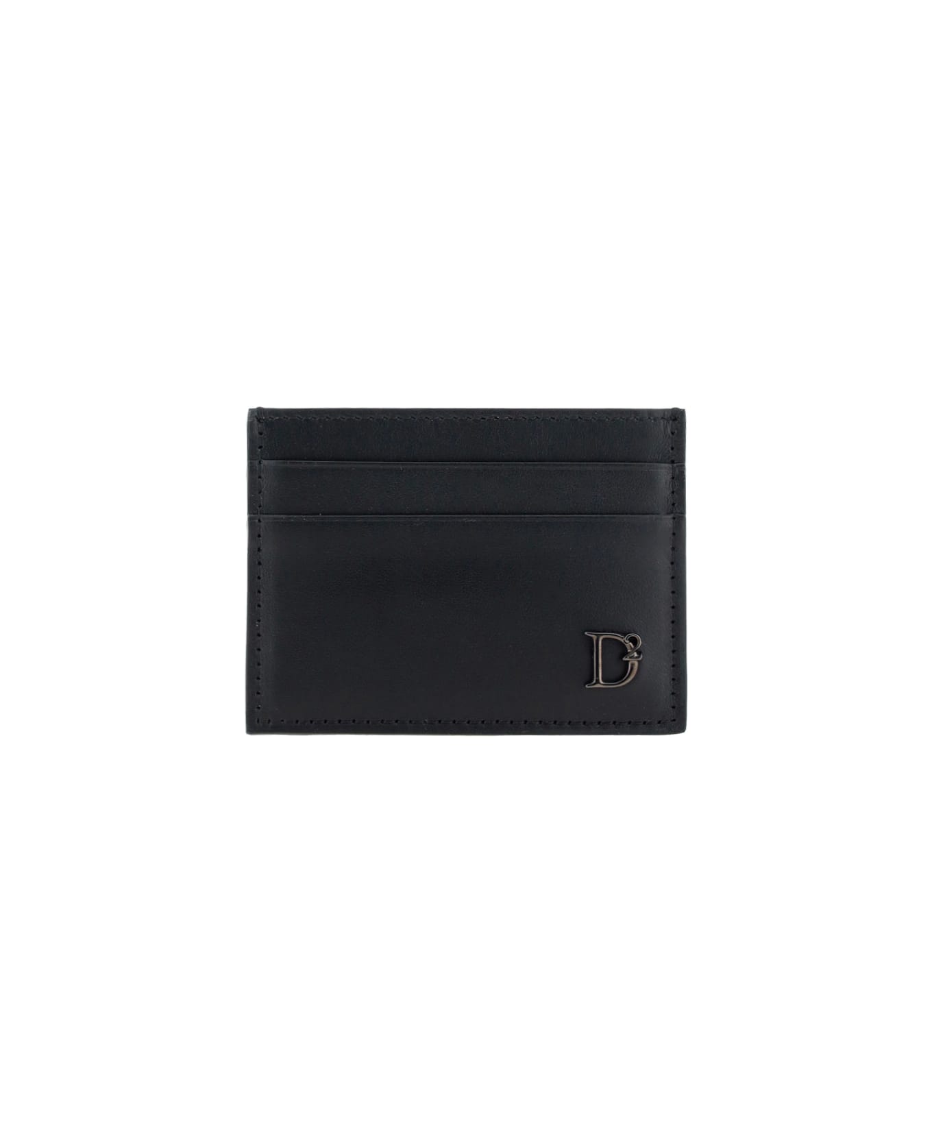 Calfskin card case by dsqaured2, card slot on upright front, plaque with iconic brand monogram embossed on front tone on tone.