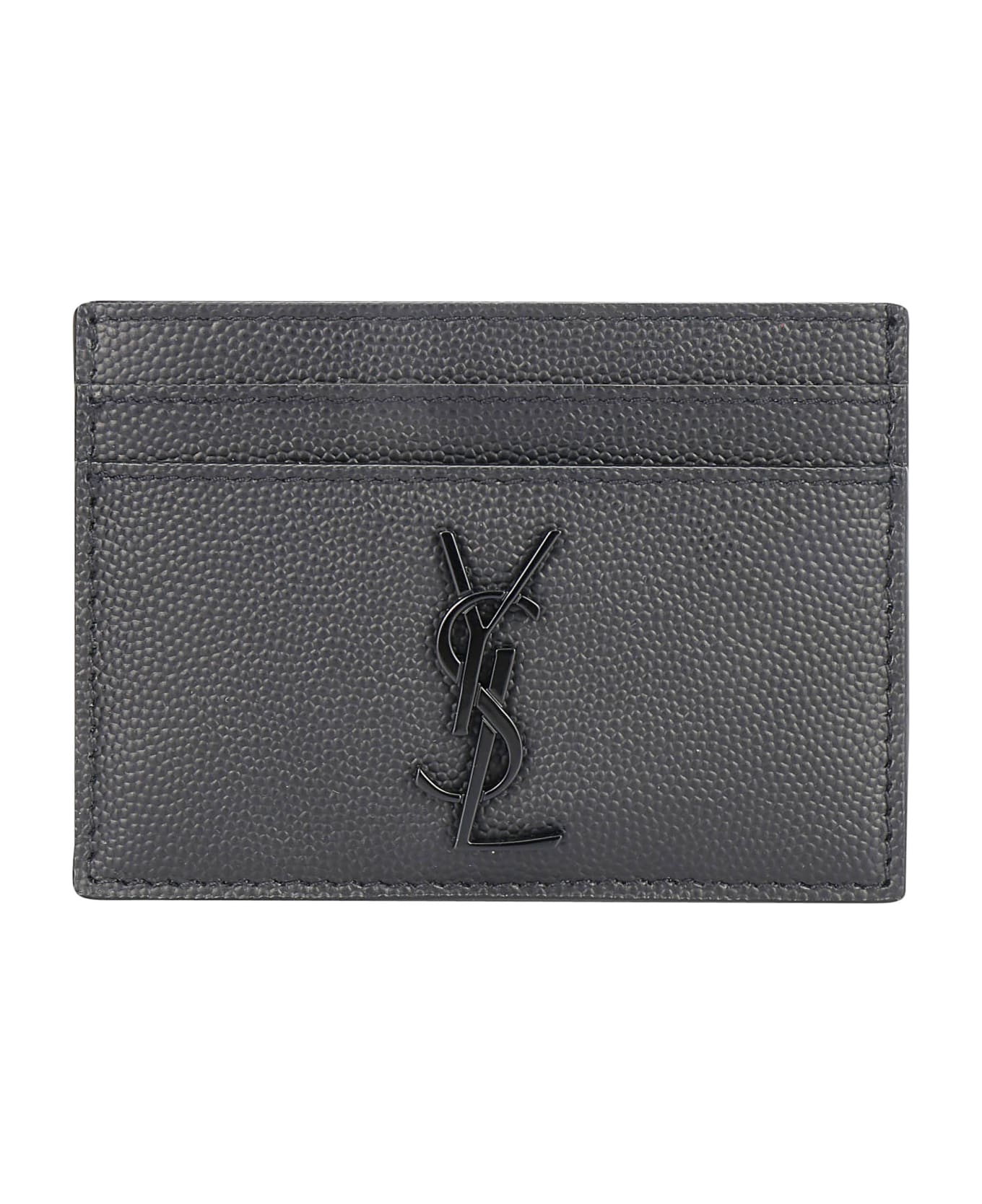 Black calfskin card holder by saint laurent, card slot on both sides, black embossed logo on front. Composition: 100% % Calf Leather Bos Taurus
