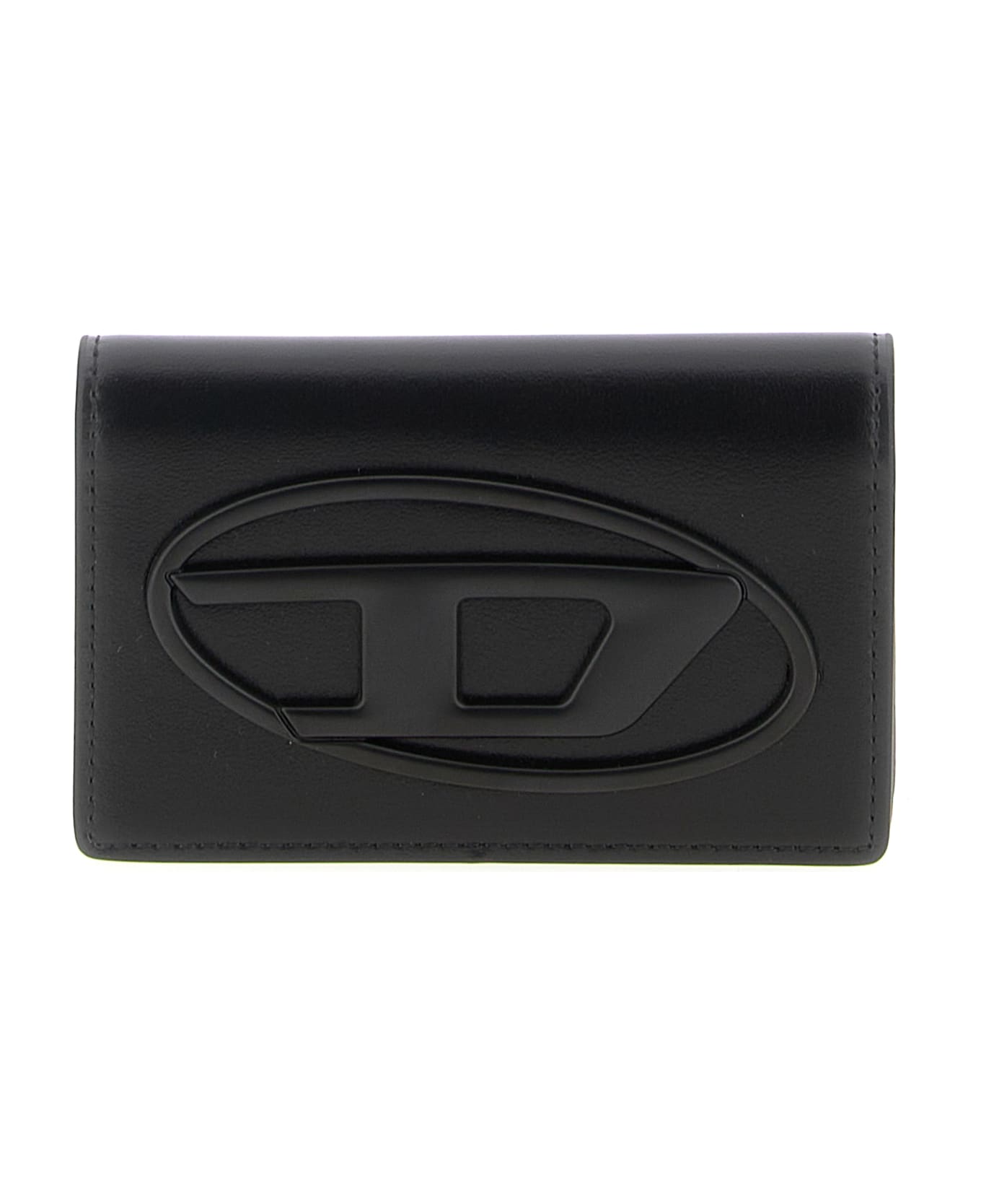 'Holi-D' smooth leather card holder, flap closure with snap button, tone-on-tone metal Oval D logo on the front, back pocket. Composition: 100% leather