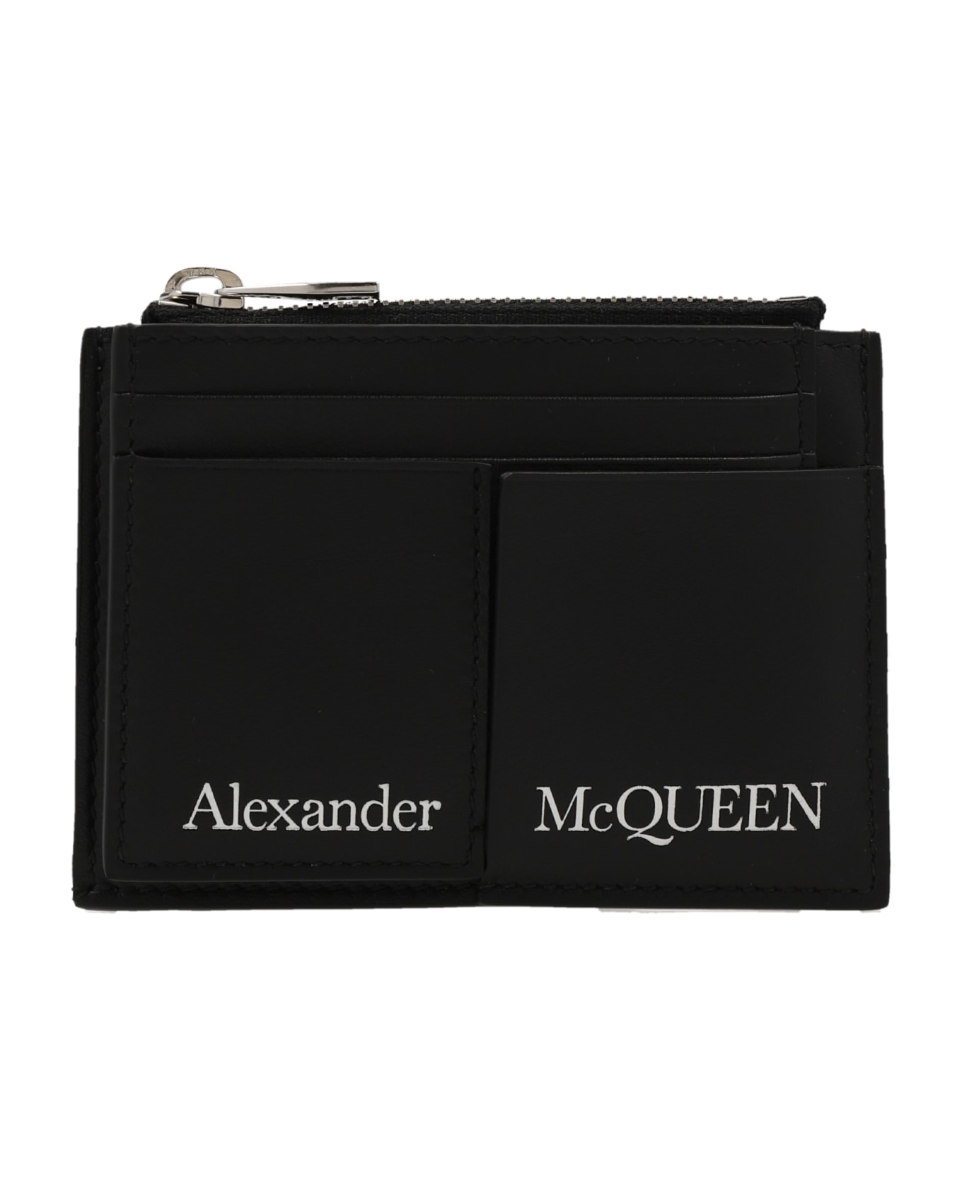 Leather wallet with logo print and a zip closure. Composition: 100% leather