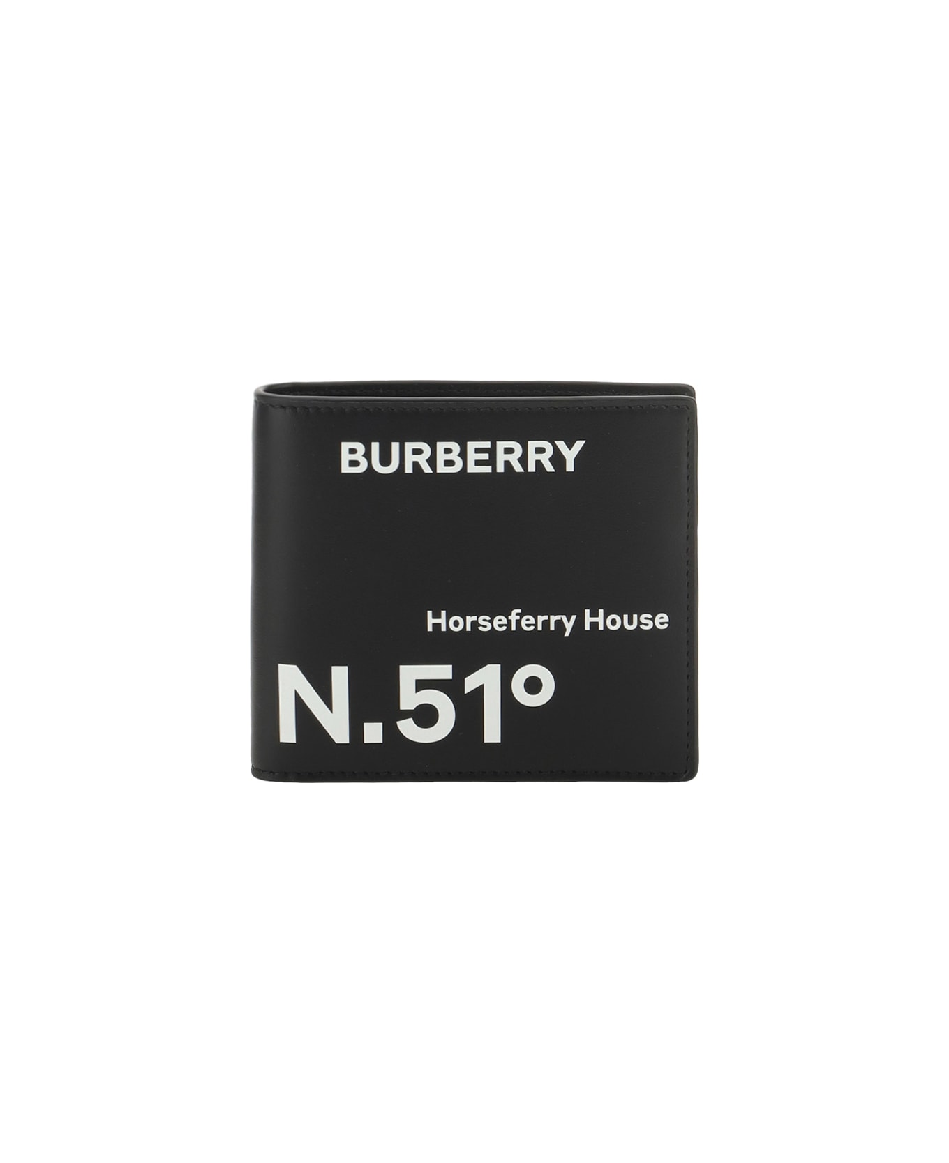 Calfskin wallet by burberry, billfold design, card slot inside, bill compartment, iconic brand monogram press-stamped on inside, iconic brand graphics printed in contrasting all-over exterior. Composition: 100% % Calf Leather Bos Taurus
