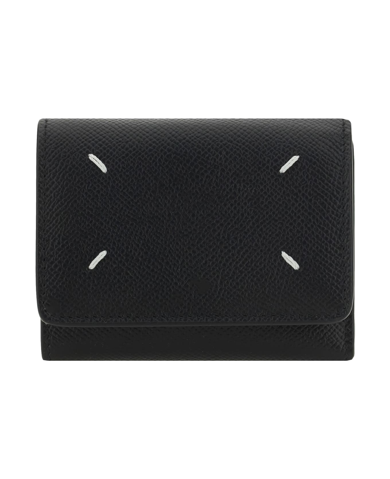Calfskin wallet by margiela, grained leather design, front snap-button closure, card slot inside, coin compartment with zipper for closure, bill compartment, iconic brand embroidered contrast stitching on back. Composition: 100% % Calf Leather Bos Taurus