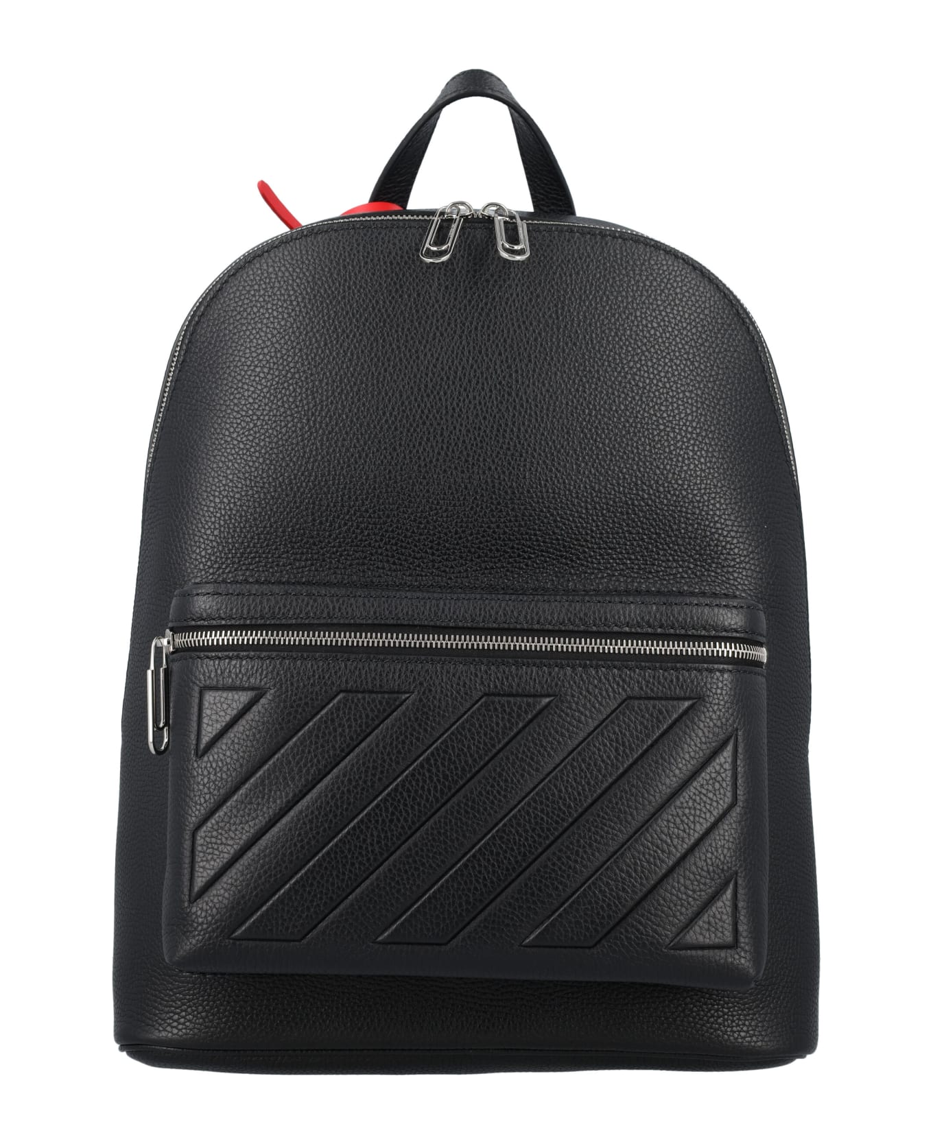 Leather Binder Backpack By Off-white. Featuring: Top Handle Zip Fastening Front Zip Pocket With 3d Tonal Diagonal Details Red Label Detail Metal Lettering Logo Plaque At Back Adjustable Shoulder Straps Width: 31 Cm Height: 42 Cm Depth: 13 Cm