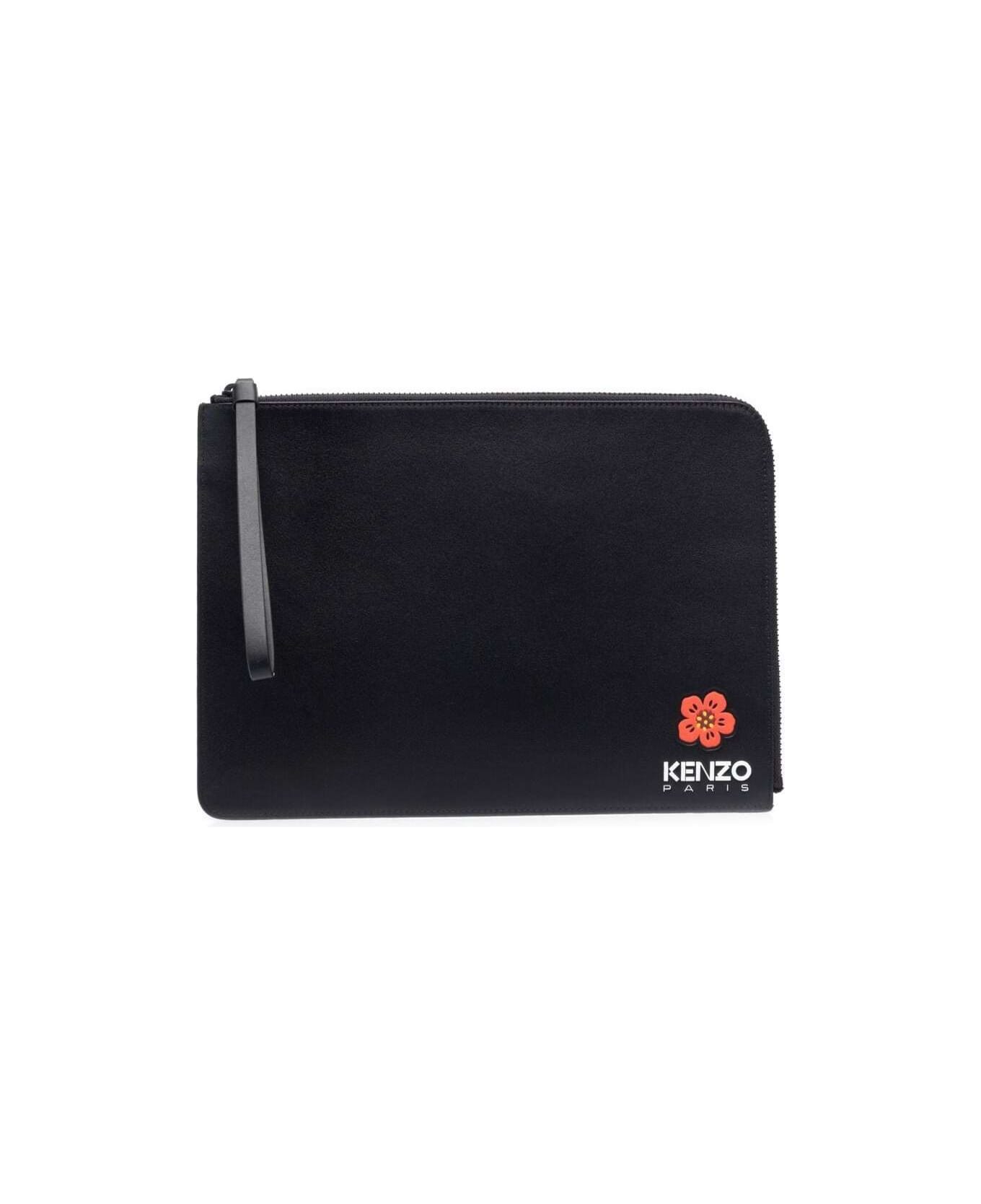 Clutch Top zip fastening Logo patch at the front Wrist strap Tonal stitching One main inner compartment Black Leather Dimensions: 16x20x28 cm
