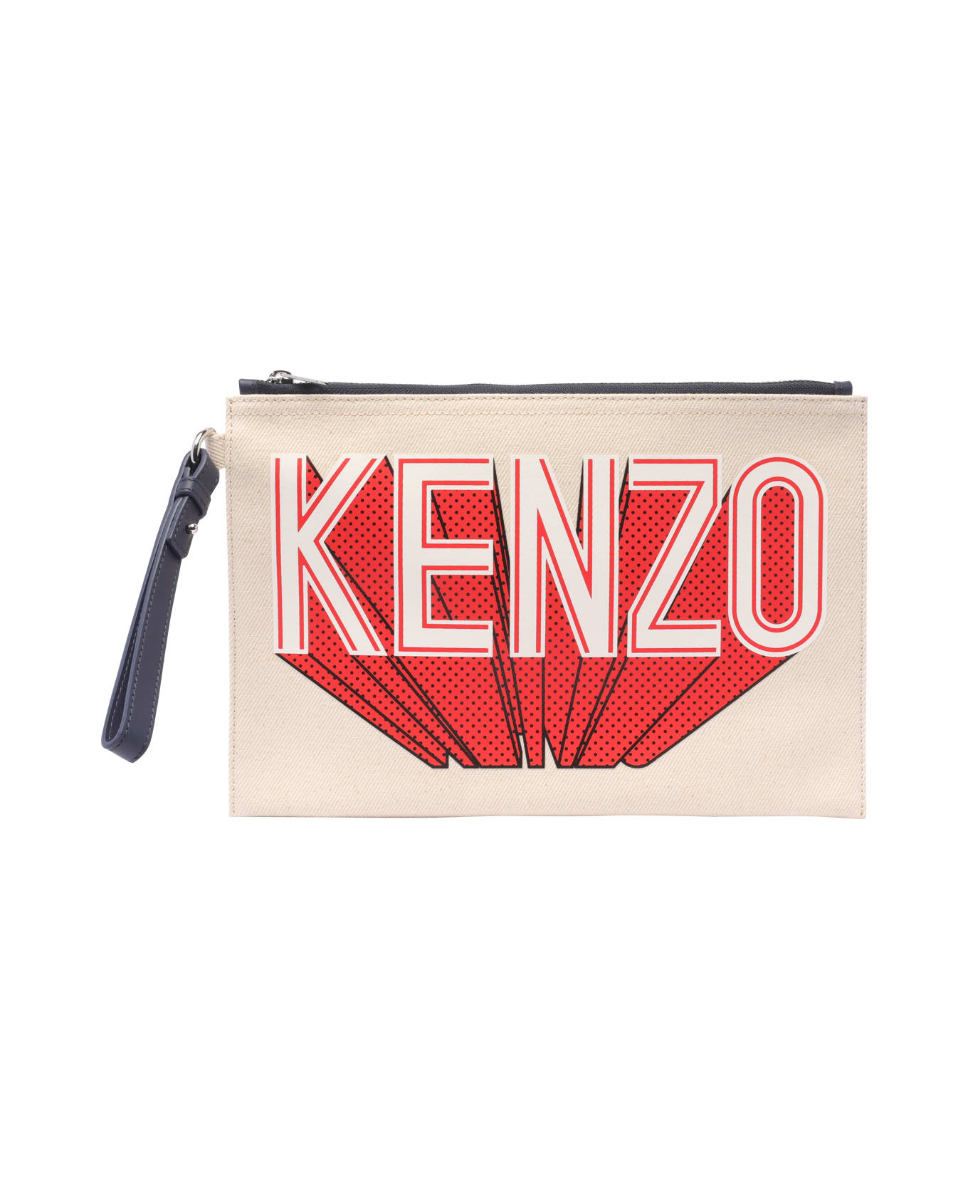 Kenzo beige Large clutch, zip closure, 1 slot, removable hand strap