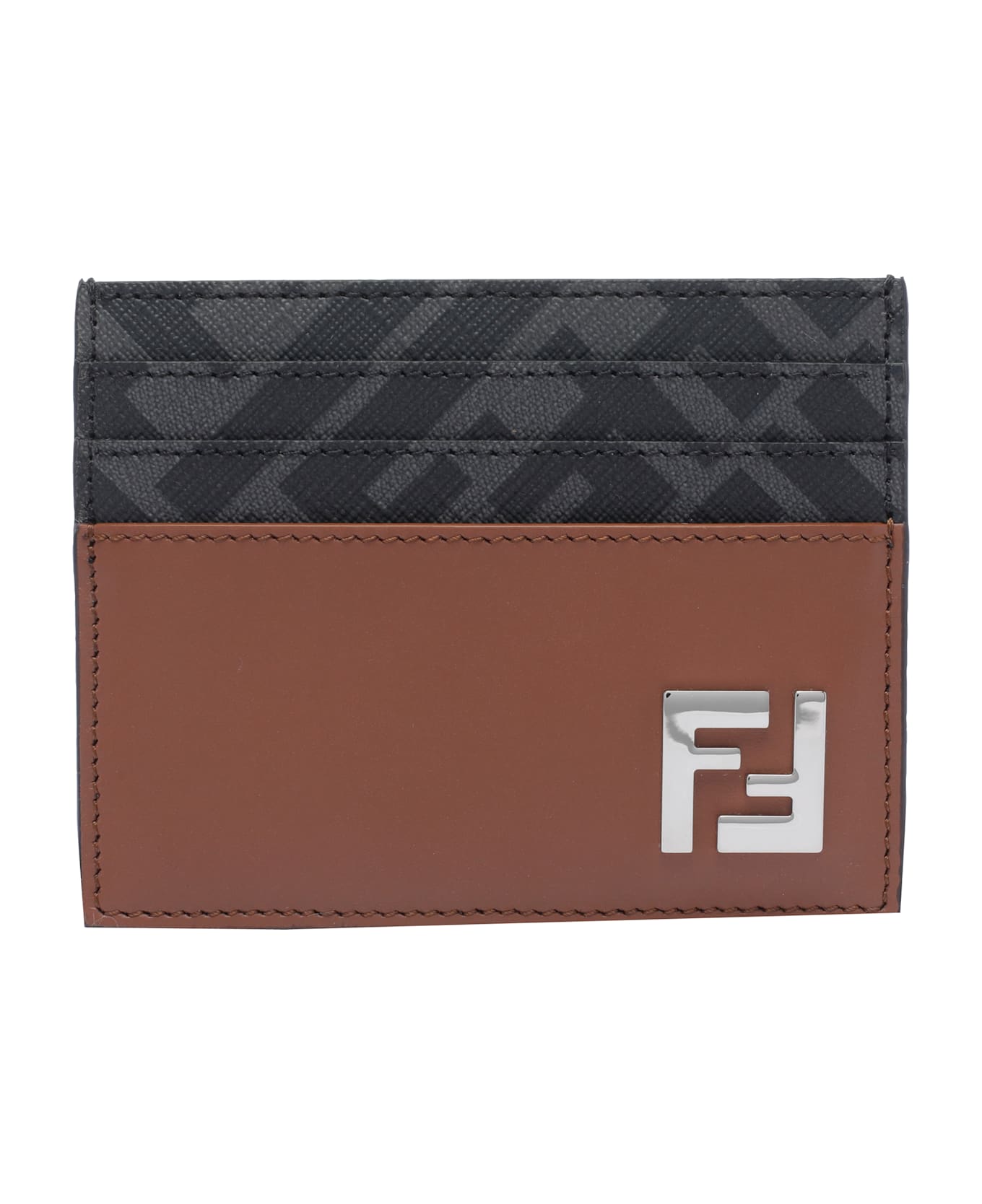 Fendi brown cards holder, 6 slots, central flat pocket, FF plaque logo Composition: 100% Fabric, 100% Calf Leather