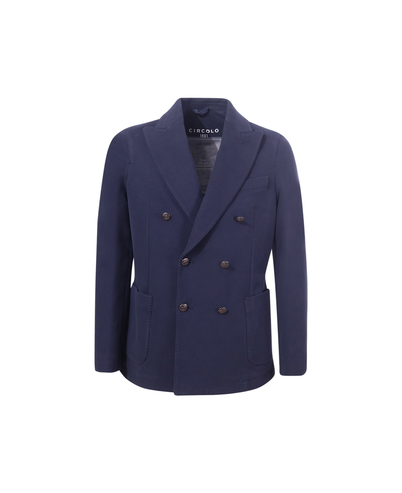 6 button closure, peak lapel, side patch pockets, welt chest pocket, double vent on the back. Regular Fit. Color: Blue. Composition: 95% Cotton, 5% Elastane. Made in Italy