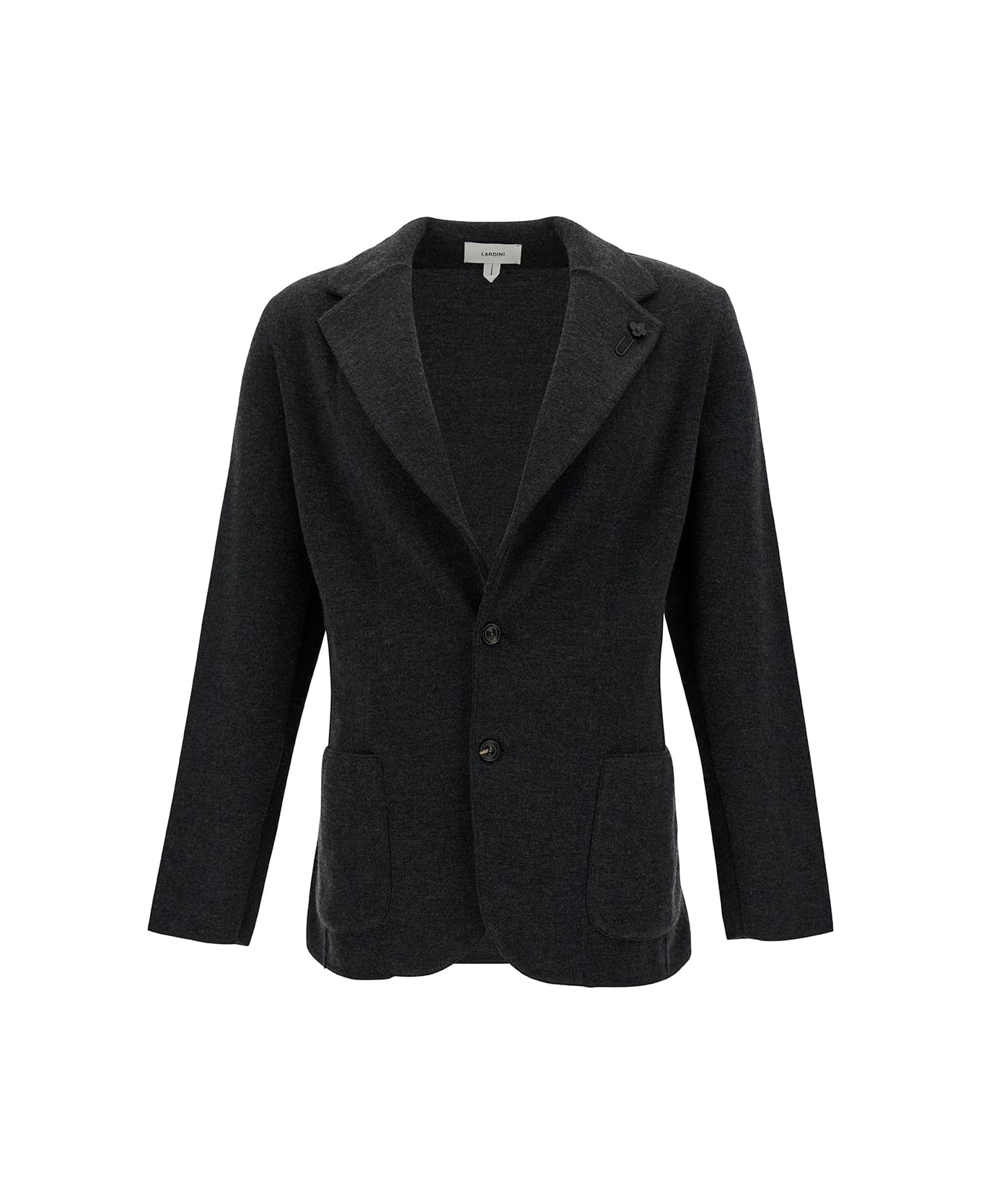 Single-breasted jacket Notched revers Long sleeves Front button fastening Two front patch pockets Charm logo Grey Wool Relaxed fit