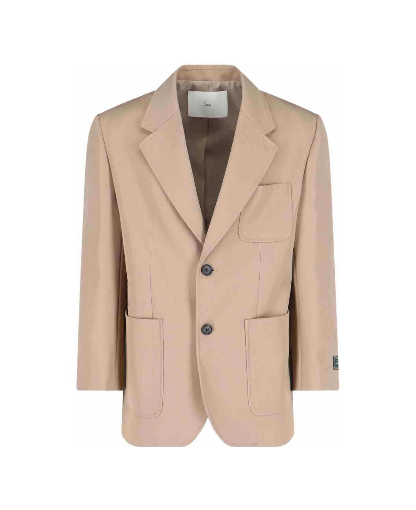 Single breast 'Unisex' Dunst blazer in beige wool blend with ribbed pattern, classic lapels, two-button closure, chest pocket, two side flap pockets, logo label on the sleeve, button cuffs, straight hem.