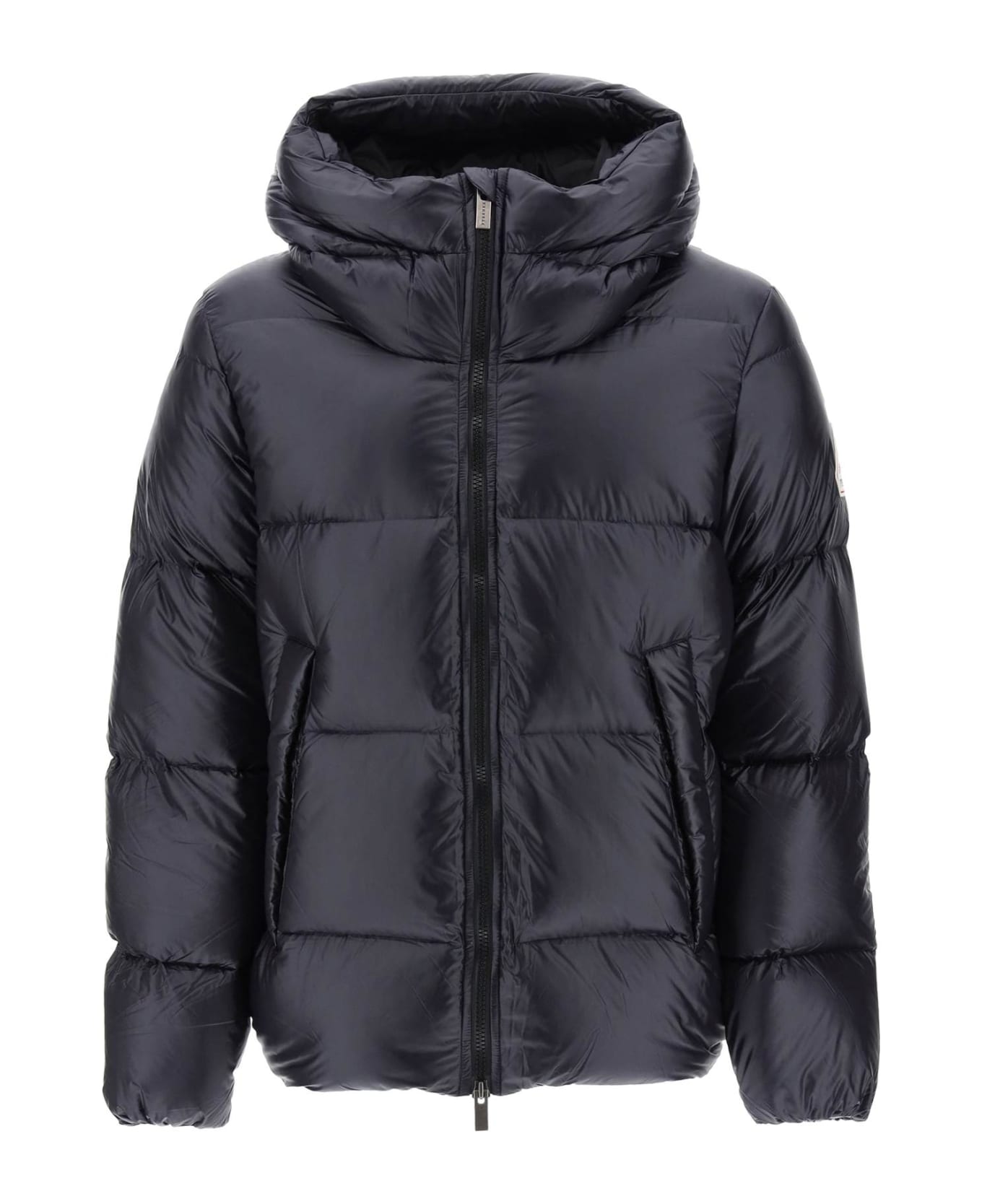 Pyrenex midi down jacket made of nylon padded with 90/10 French goose down and feathers, quilted horizontally. Front fastening with double-slider zip with logoed metal zip puller. Maxi slash pockets with hidden zip, long sleeves with elasticated cuffs and logo patch. Non-removable hood with high collar closure. Elasticated hem. The model is 187 cm tall and wears size L.