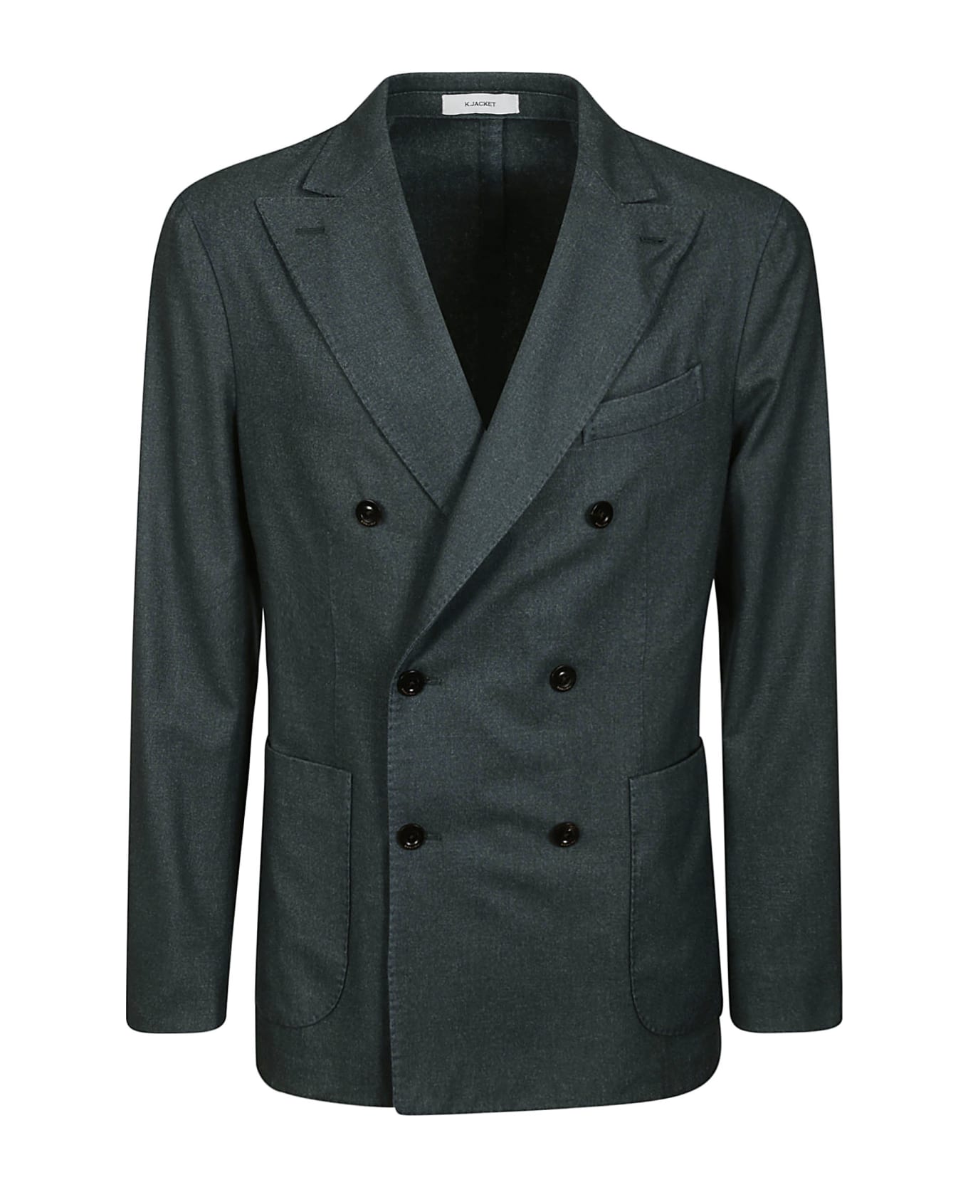 BOGLIOLI Double-breasted blazer with wide green wool lapels, double-breasted closure with buttons, welt pocket at the chest, two applied pockets at the front, long sleeves, buttoned cuffs, straight hem and a back vent.