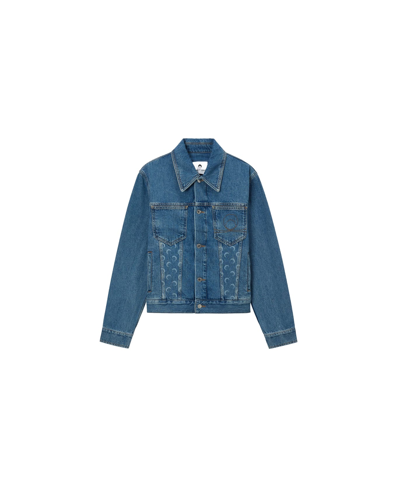 light blue moon print chest pockets button fastening point collar logo patch