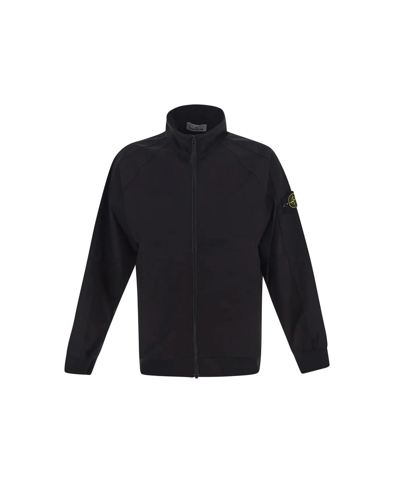 Stone Island jacket in black polyamide with long sleeves. The item is featured by side pockets, zip fastening and logo patch on shoulder. Composition: 88% Polyamide, 12% Elastane