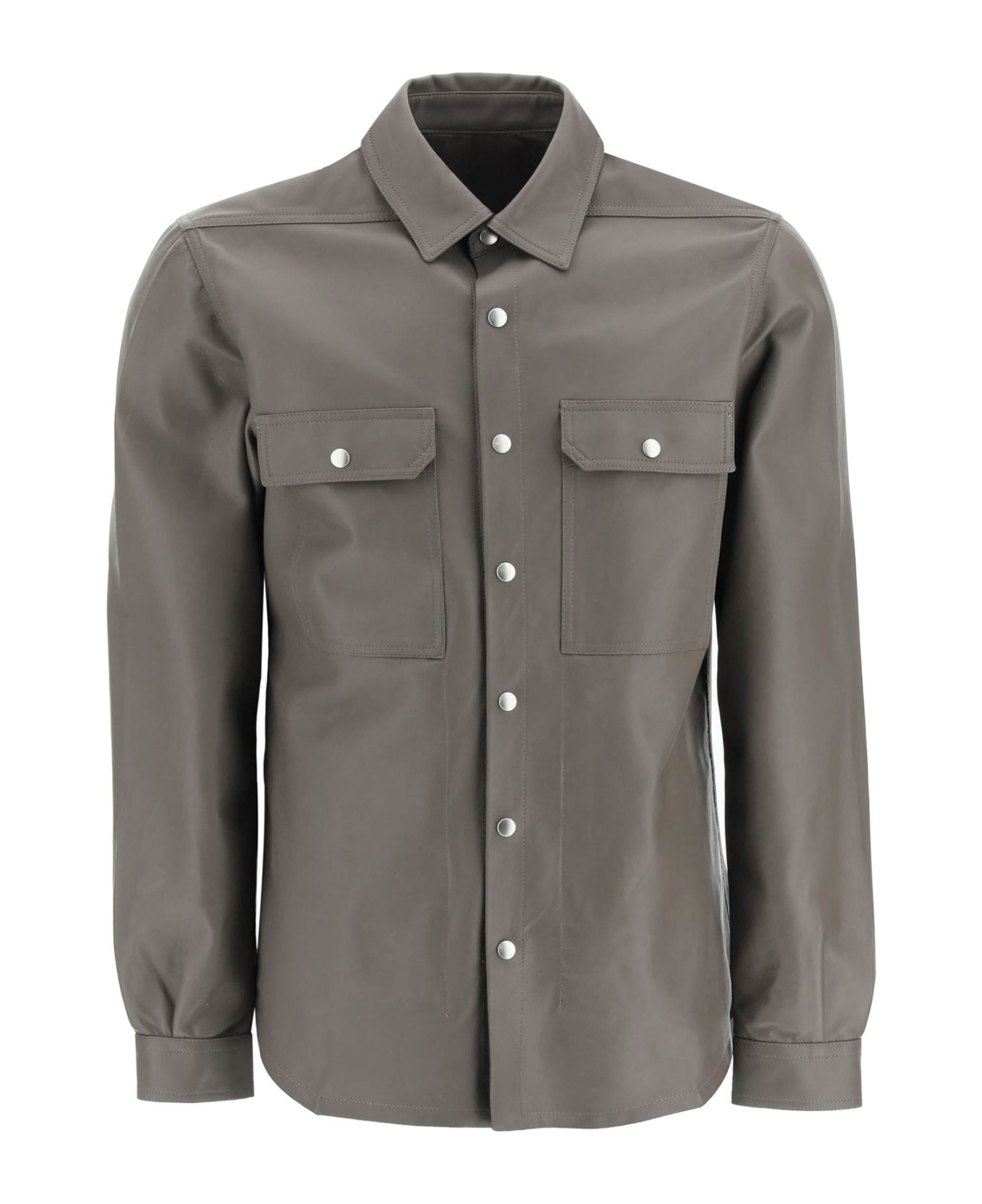 Rick Owens lambskin outershirt, featuring pointed collar, snap closure and two chest pockets with studded flap. Signature webbing tape on the back, unlined interior with two fabric pockets. Regular fit. The model is 187 cm tall and wears a size IT 48.