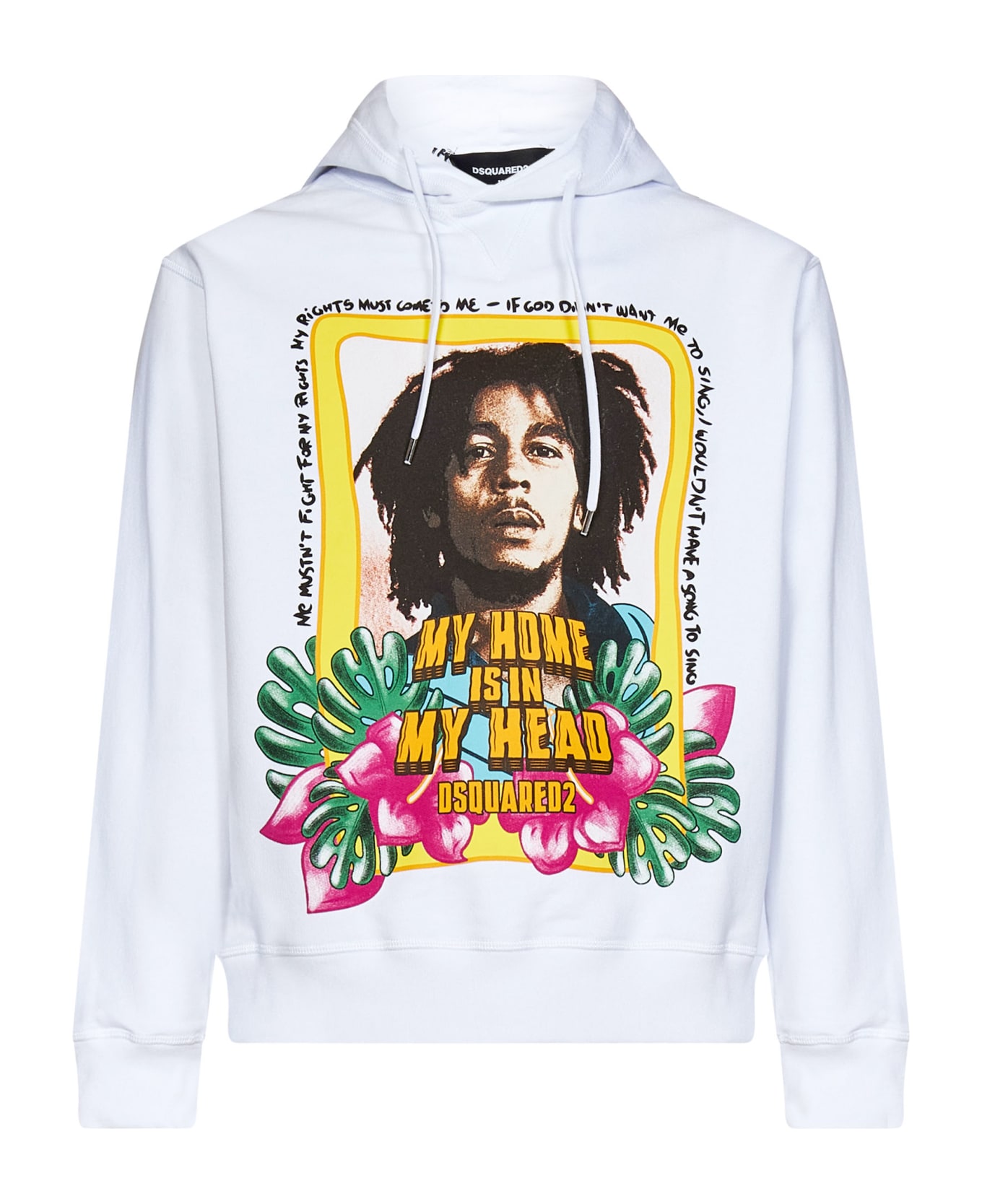 • BOB MARLEY maxi graphic print with "DSQUARED2" lettering at front
