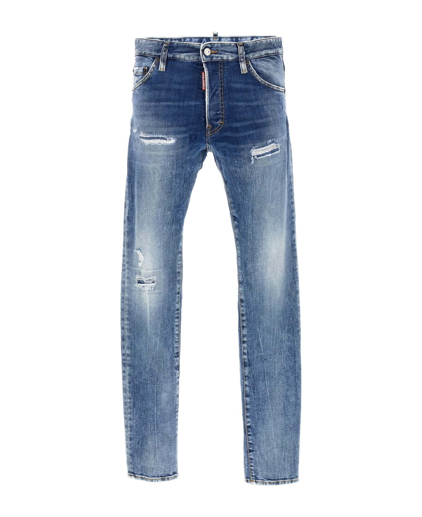 'Cool guy' stretch denim jeans with rips and ruins, button closure.