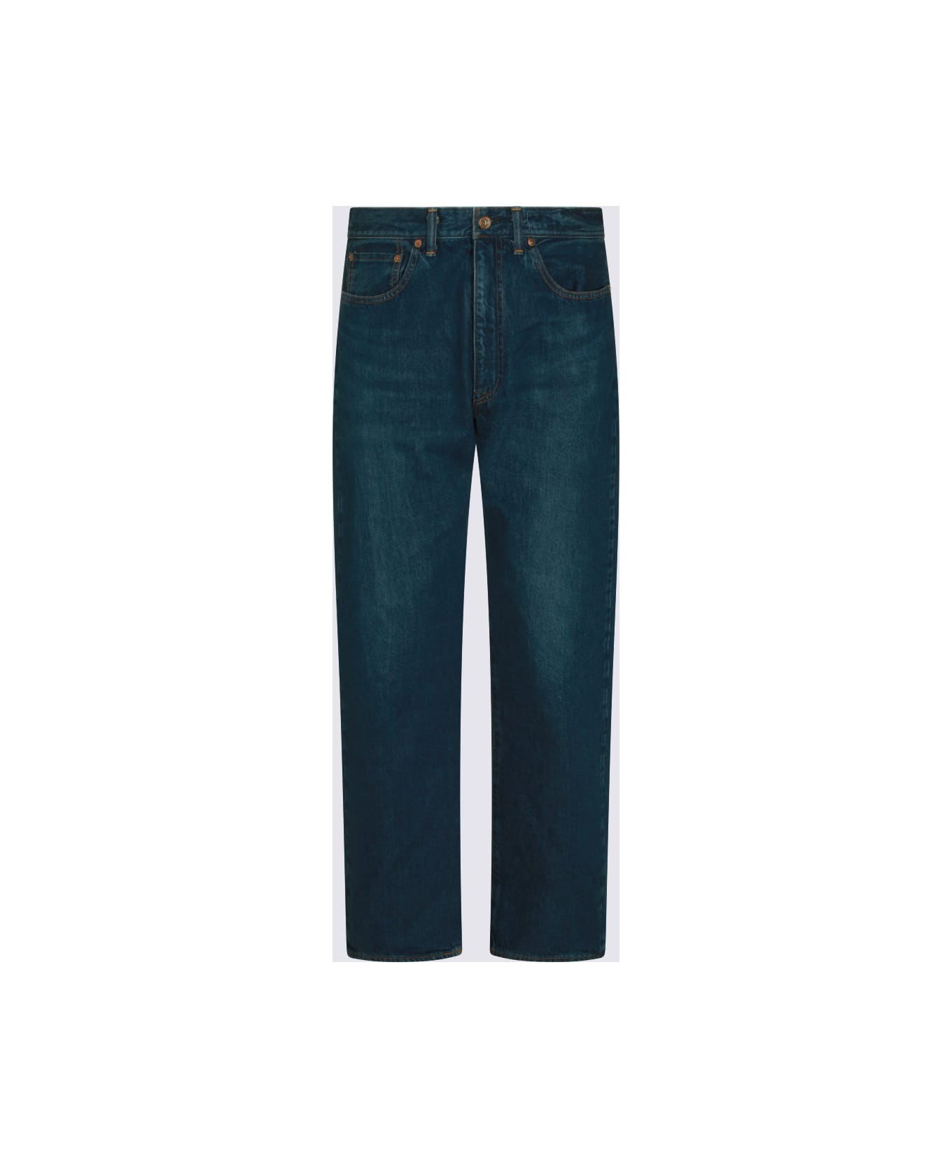 Dark blue cotton denim jeans from Maison Kitsune featuring frontal fastening, belt loops, pockets and regular vestibility.