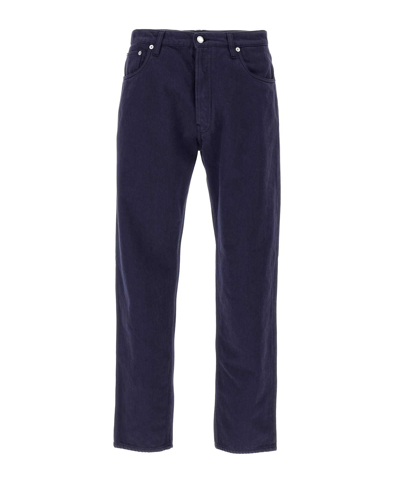 Garment-dyed cotton denim jeans, triangle logo in enameled metal on the back, five pockets, straight leg, button closure. Composition: 100% cotton