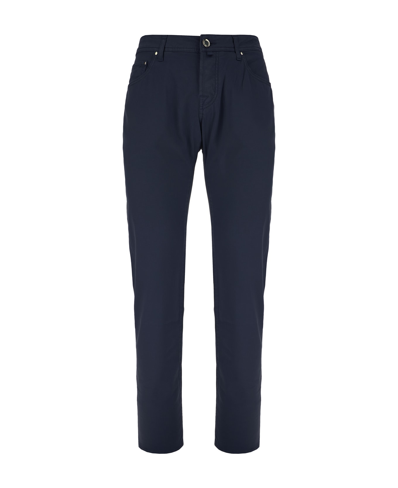 Navy Blue Stretch Cotton Blend Pants