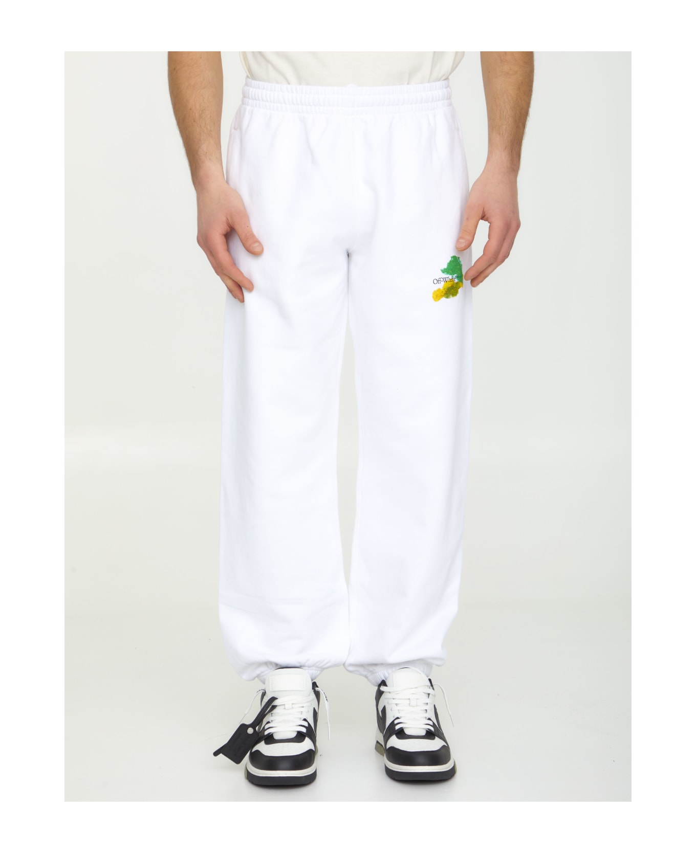 White cotton track pants with multicolor Brush Arrows print at the back of the legs. It features elasticated waistband, multicolor Off-White logo printed on left leg, two side welt pockets and stretch ankle cuffs.