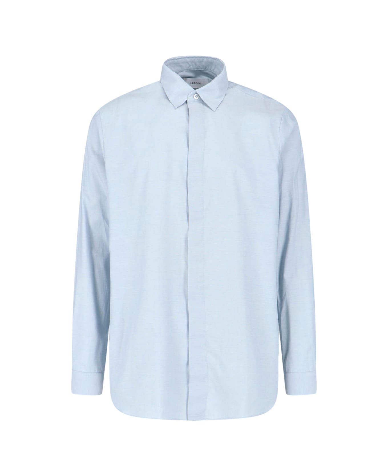 Lardini cotton and viscose shirt, light blue, collar, long sleeves, button closure, button cuffs. Composition: 78% Cotton, 22% Viscose