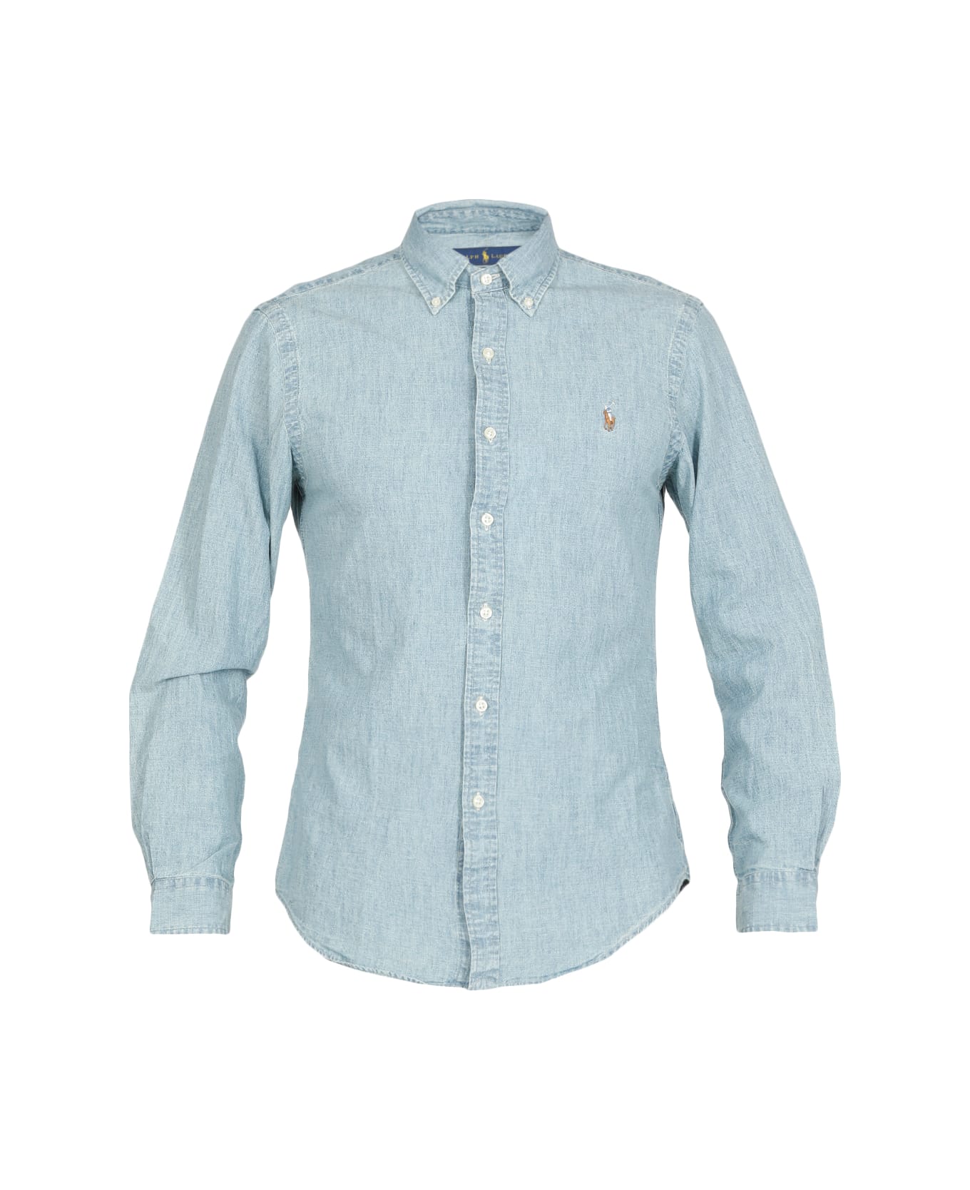 Cotton Shirt from Ralph Lauren: - Cotton shirt - Classic collar - Long sleeves - Buttons at cuffs - Buttoned fastening - Front contrasting color embroidered logo - Rounded hem - Slim fit