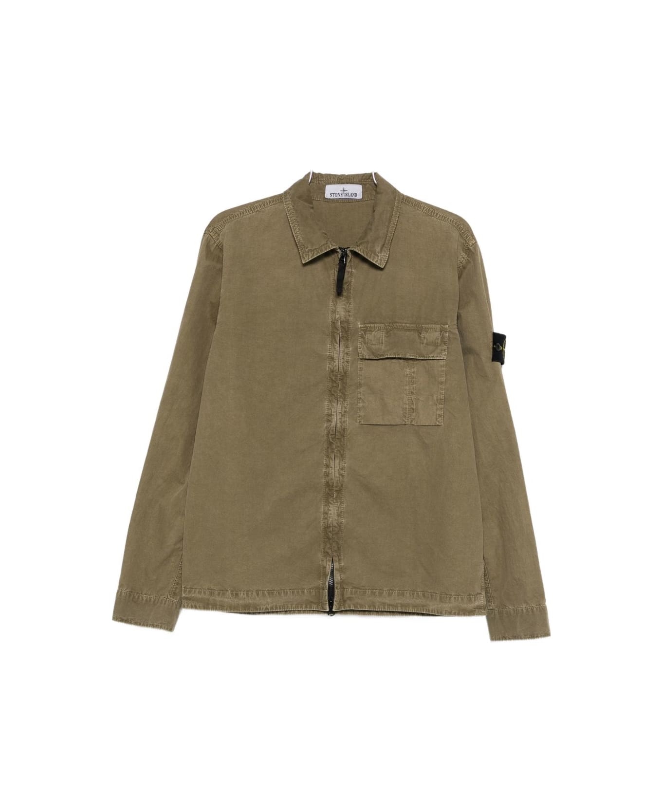 green point collar zip fastening chest patch pocket long sleeves buttoned cuffs