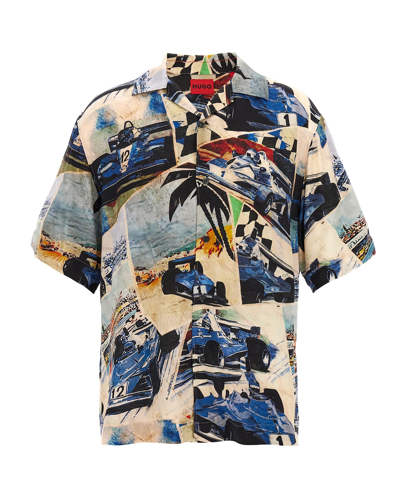 'Espino' viscose shirt with all-over print, bowling model, short sleeves with dropped shoulders, front button closure.
