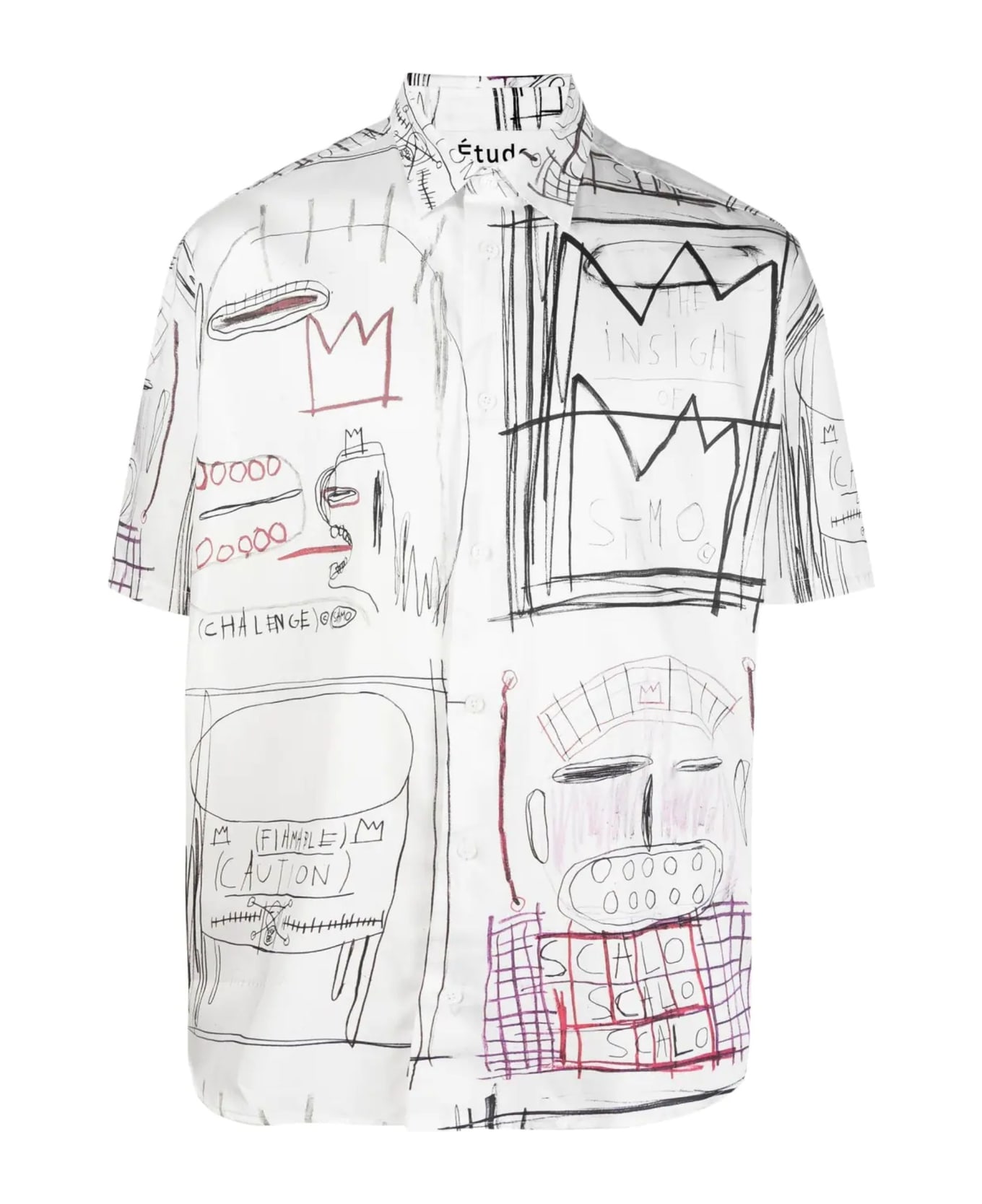Etudes x Jean-Michel Basquiat white shirt, organic cotton, illustration-style print, classic collar, front button fastening, short sleeves, rear curved hem Composition: Organic Cotton, 100%