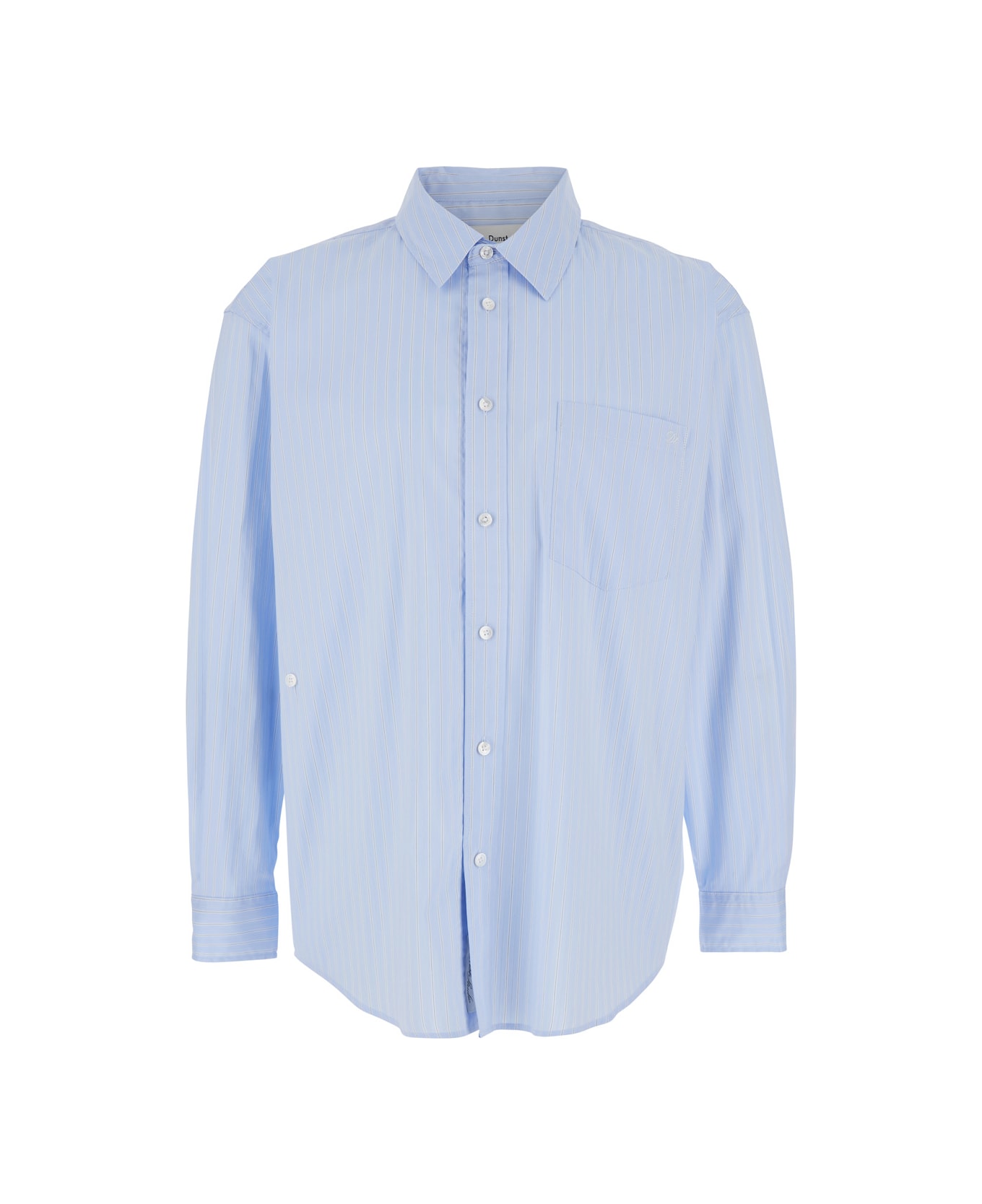 Shirt Light blue Classic collar Long sleeves Front button closure All-over striped pattern Patch pocket on the chest Embroidered logo on the front Buttoned cuffs Rounded hem Cotton poplin Regular fit