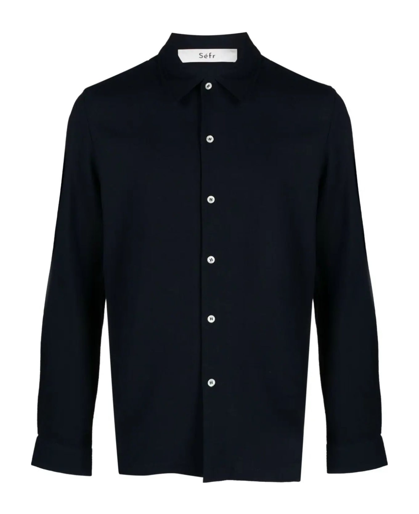 Navy blue virgin wool shirt, classic collar, mother-of-pearl button fastening, long sleeves, buttoned cuffs, straight hem Composition: Viscose, 60% , Virgin Wool, 40%